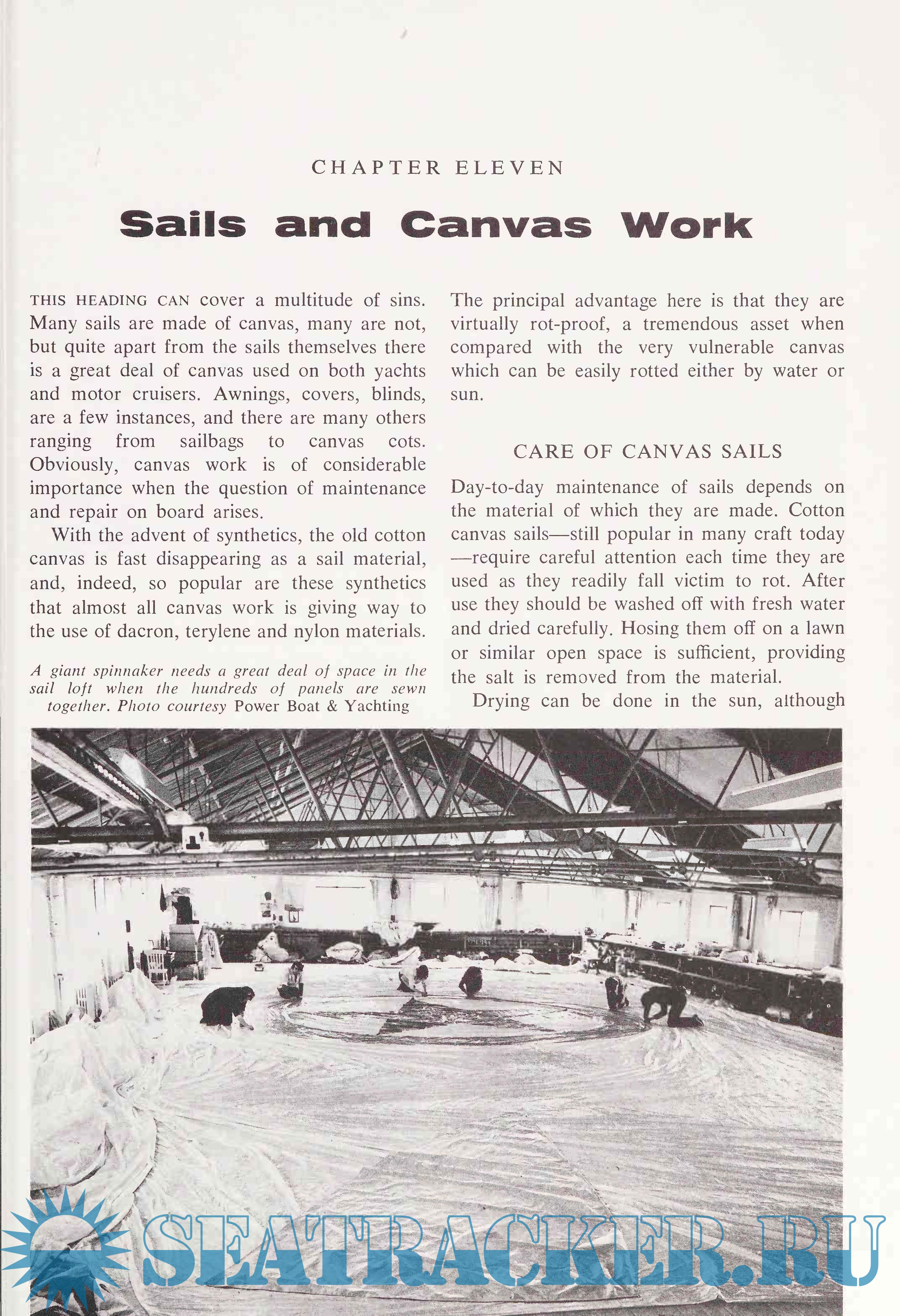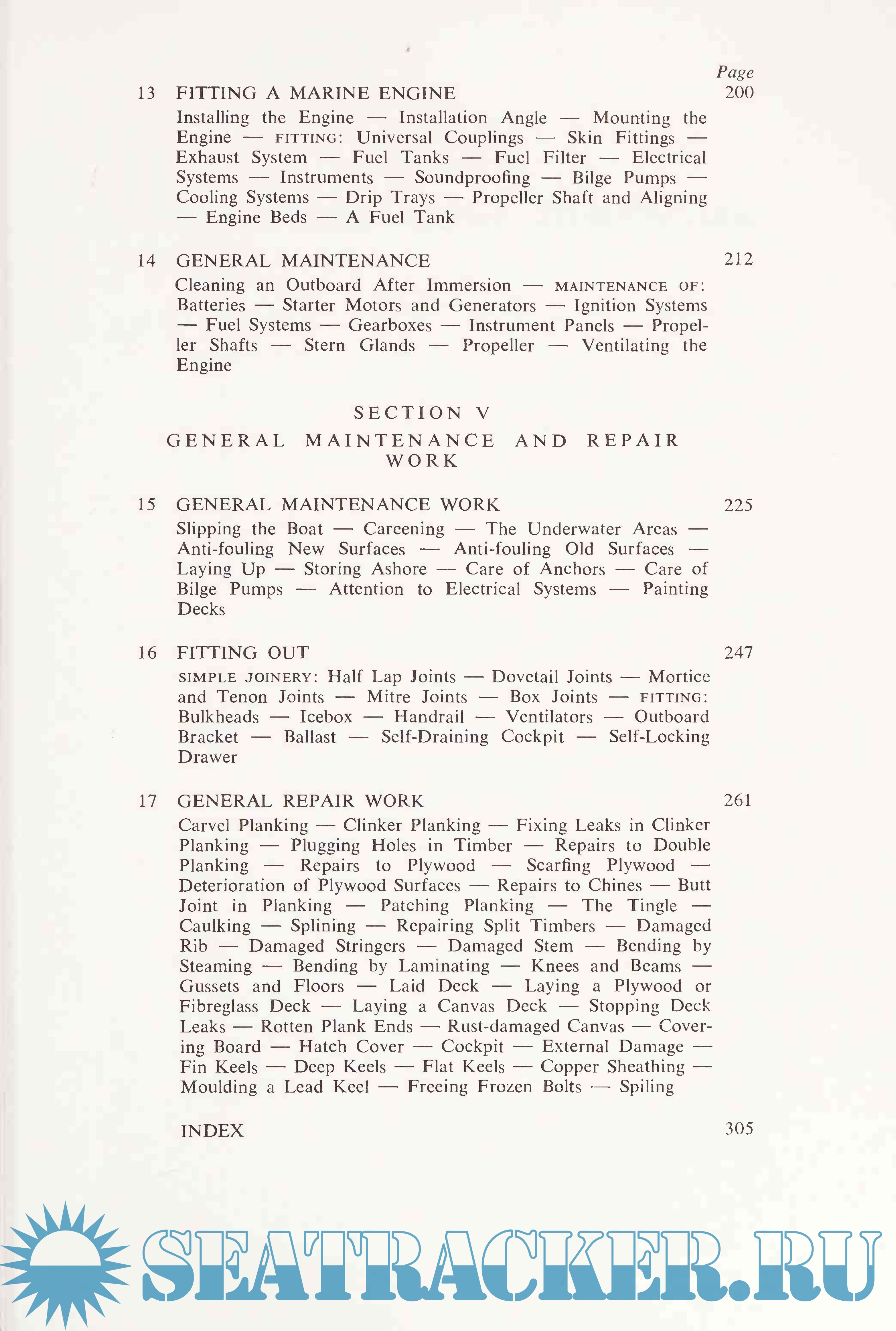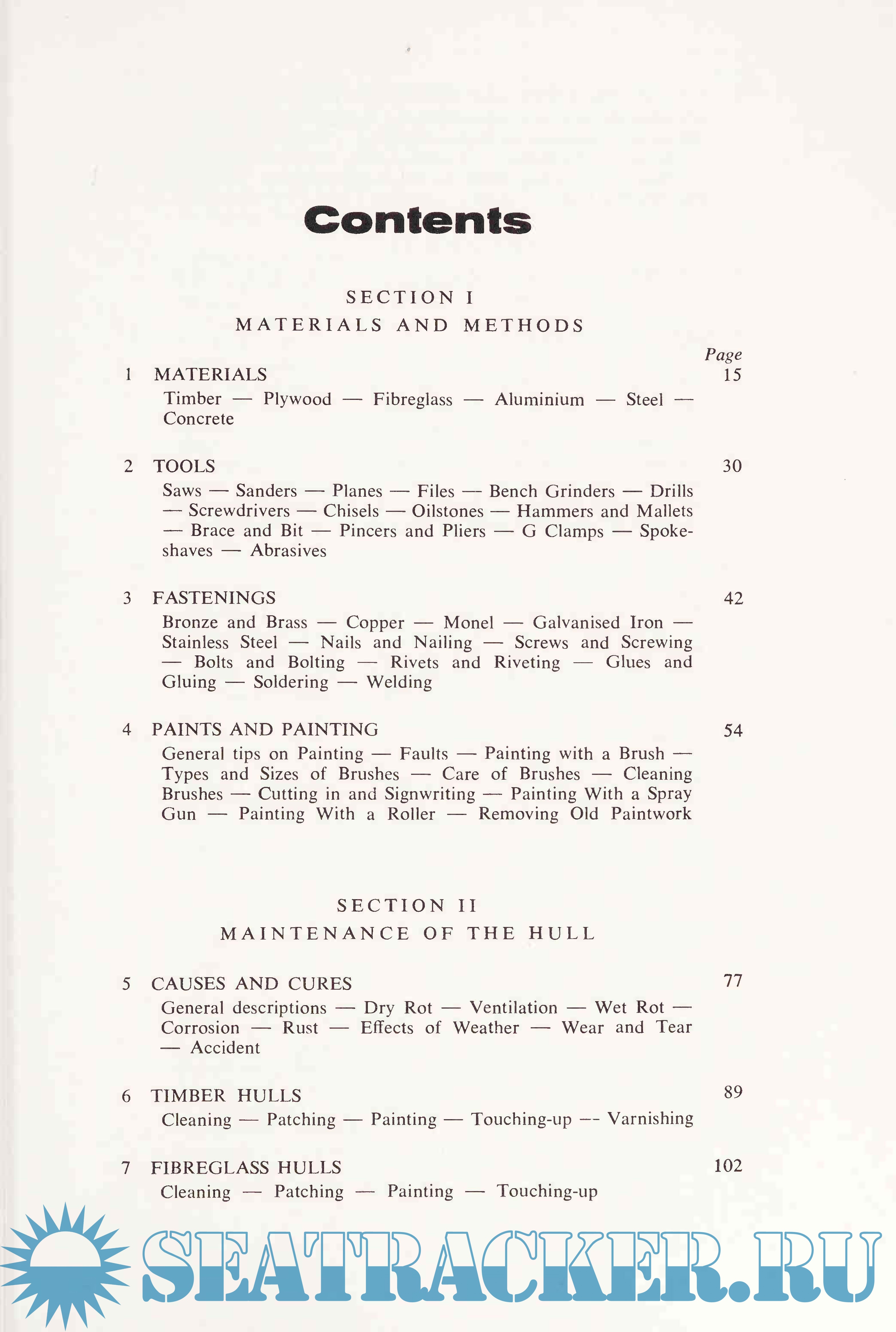 Sailboat maintenance is fully covered with a discussion of the care and repair of masts, spars, sails and rigging.
