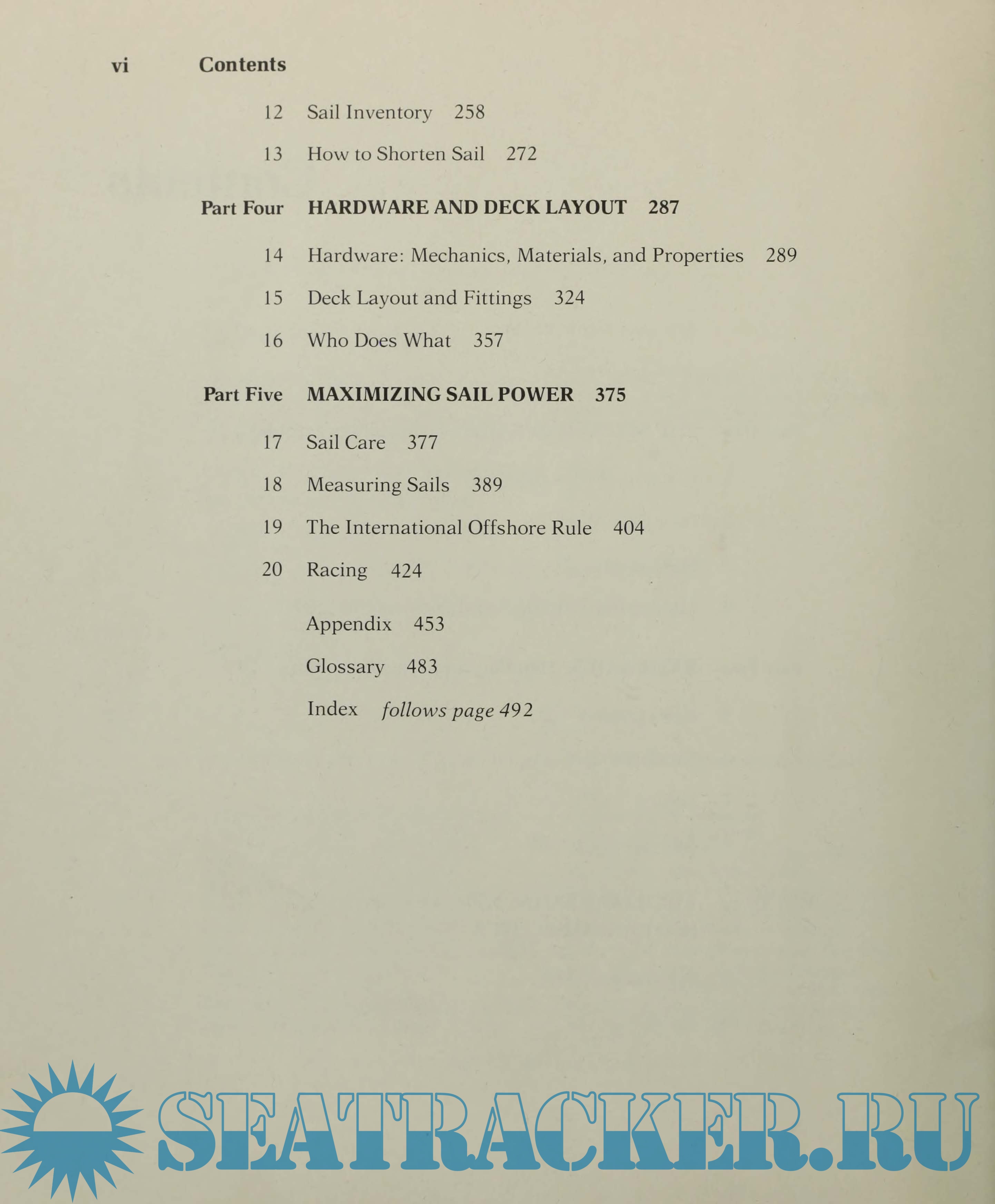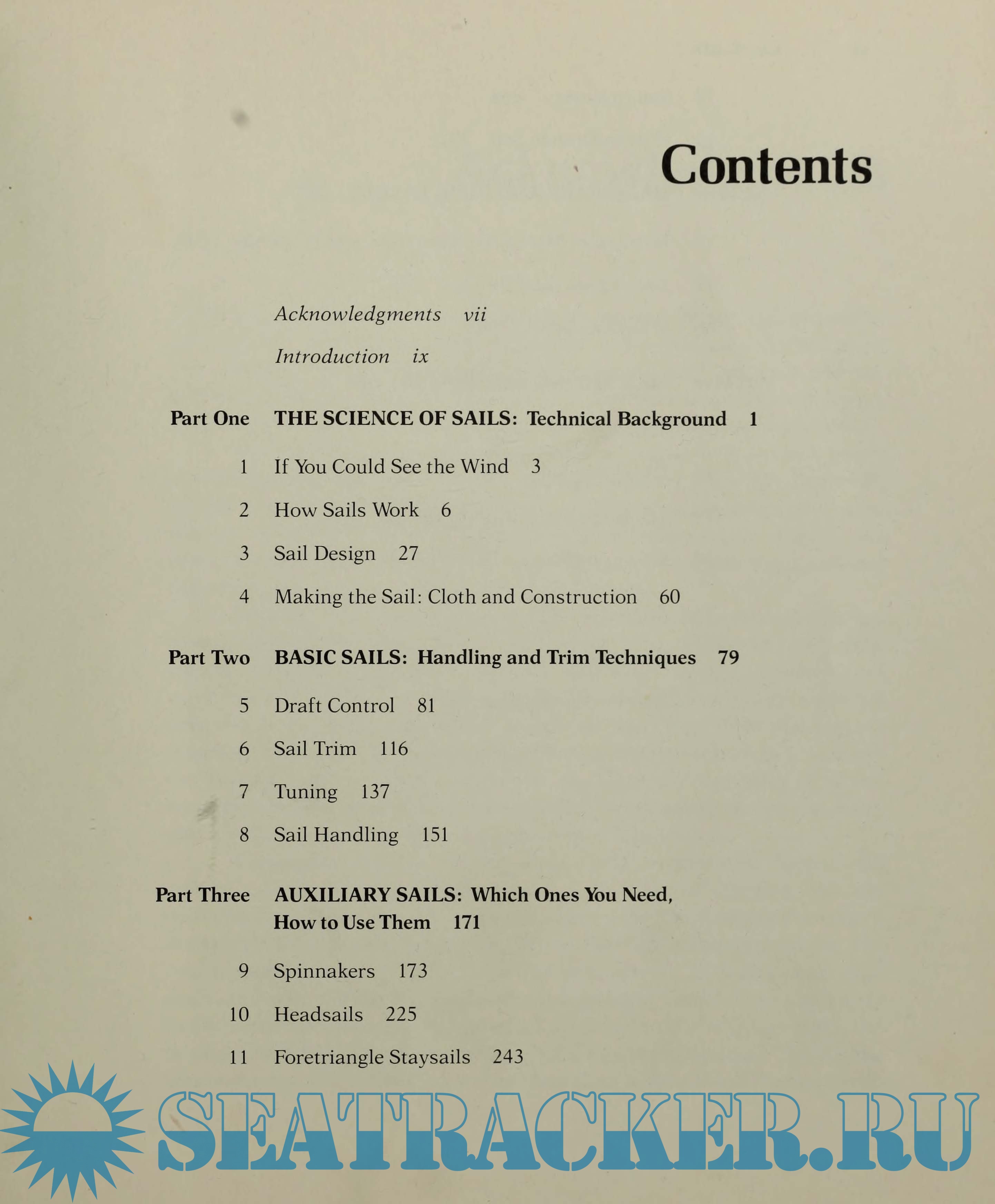 This may just be the best book on the dynamics of sails. It goes into great detail where most general and even special sailing books only scratch on the surface. However stays short, clear and precise for easy reading and understanding. It includes everything from the many basic sail layouts to precise trimming and the resulting shapes of the sail and its resulting effectiveness. Together with the physics of different deck and rigging set-ups and structural loads on the gear it gives a good reference for anyone beginning to sail and those who need more information. It rounds off with good examples of what the different crew members have to handle at various stages of sail racing (and this for the various boat-size classes), how to sail with the best performance and how to create polar plots for your own vessel. The 1975 edition comes in a nice red hard cover and features plenty clear illustrations and supplementing black and white photographs. If you are planning on building a sailboat or even want the optimum sail from a sailmaker, this book is it. Every sailor needs this book to properly understand how his vessel works!