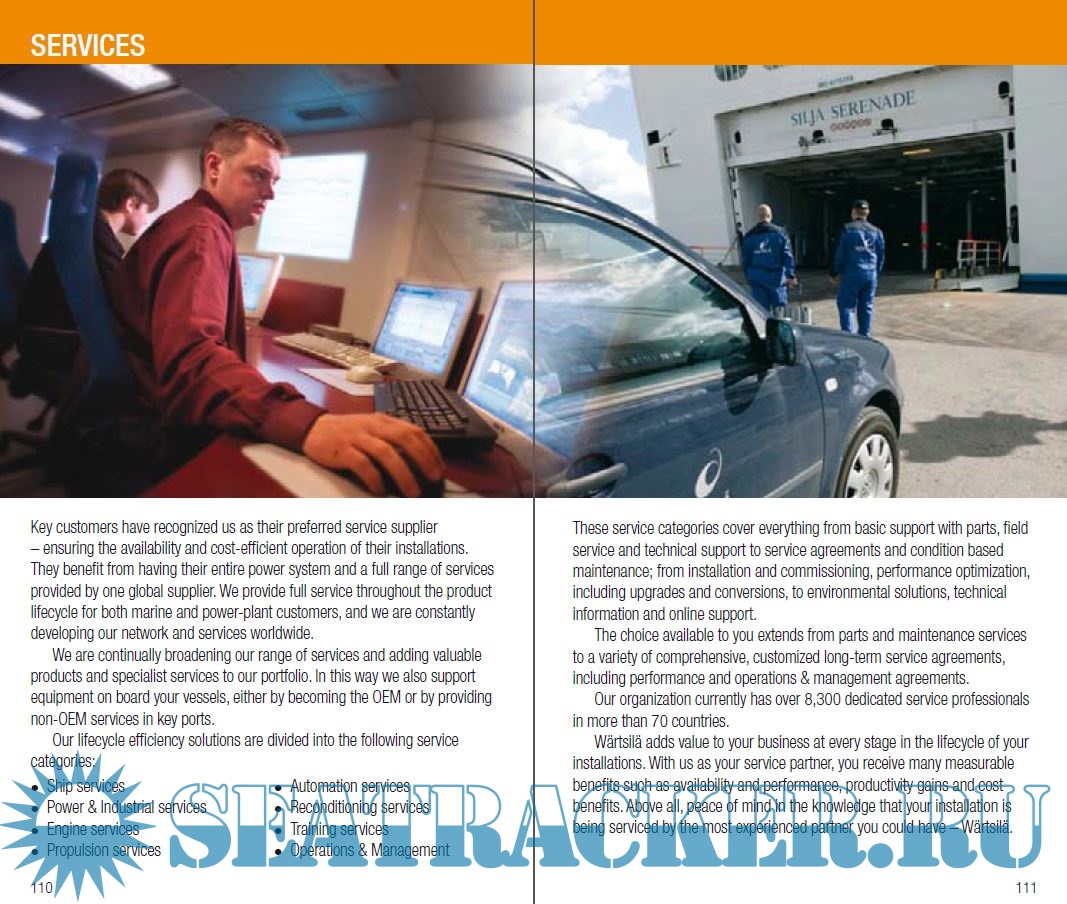 Description: Wärtsilä is the leading supplier of ship machinery, propulsion and manoeuvring solutions for all types of marine vessels and offshore applications. Wärtsilä is the only company in its field with a worldwide service network able to take complete care of customers’ ship machinery at every lifecycle stage.Wärtsilä ship power solutions are based on technological expertise, close customer co-operation and industry-leading innovations spanning the complete range of marine power and propulsion needs. These solutions are customized to the specific ship design and operational requirements, ensuring maximum efficiency, reliability and environmental performance over the entire lifecycle of the installation.