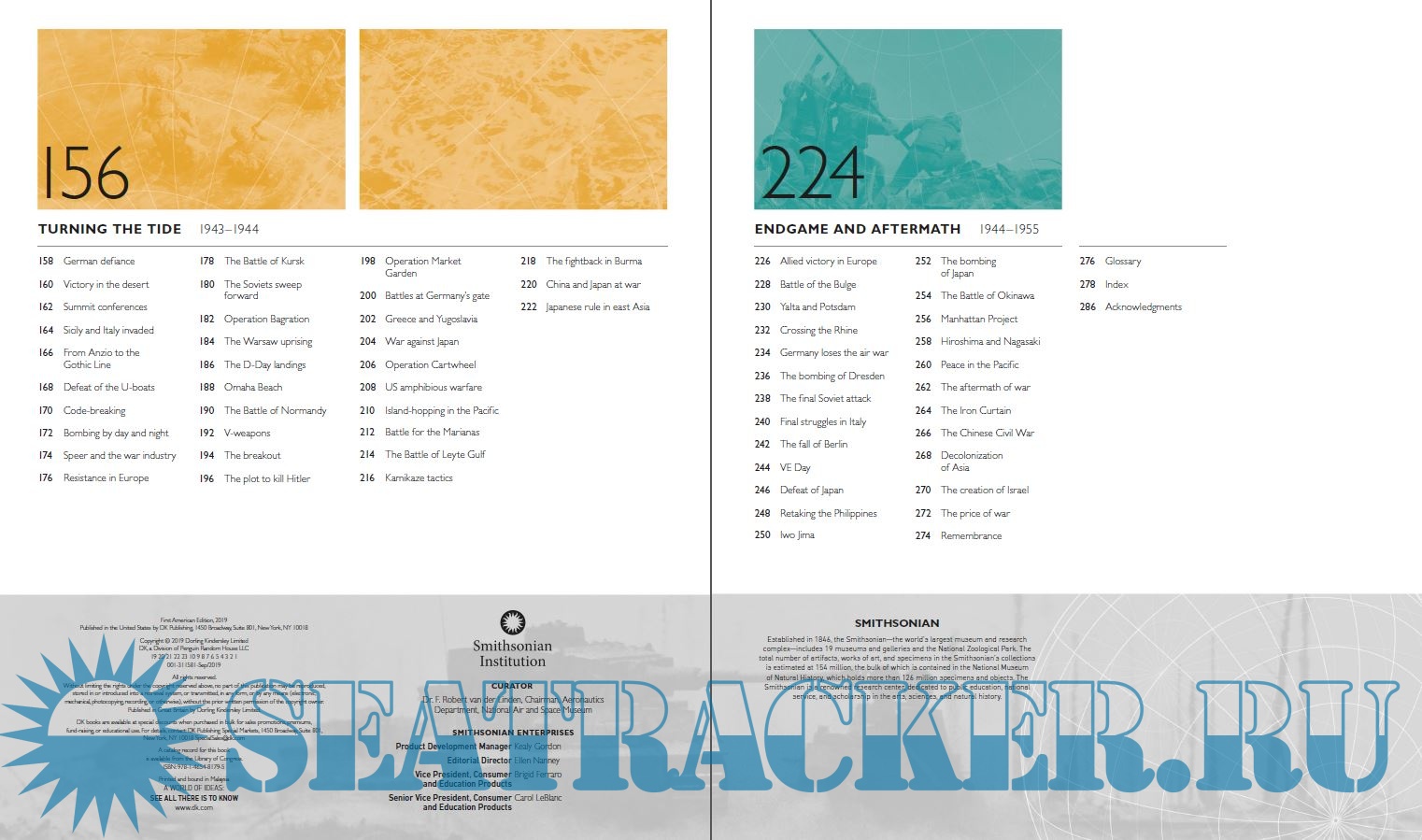 Year: 2019 Language: english Author: Smithsonian Institution Publisher: Dorling Kindersley ISBN: 978-1465481795 Format: PDF Quality: eBook Pages count: 288 Description: Trace the epic history of World War 2 across the globe with more than 100 detailed maps. In this stunning visual history book, custom maps tell the story of the Second World War from the rise of the Axis powers to the dropping of the atom bomb on Hiroshima and Nagasaki. Each map is rich with detail and graphics, helping you to chart the progress of key events of World War II on land, sea, and air, such as the Dunkirk evacuation, the attack on Pearl Harbor, the D-Day landings, and the siege of Stalingrad. Historical maps from both Allied and Axis countries also offer unique insights into the events. There are timelines to help you follow the story as it unfolds, while narrative overviews explain the social, economic, political, and technical developments at the time. Fascinating, large-scale pictures introduce topics such as the Holocaust, blitzkrieg, kamikaze warfare, and code-breaking. Written by a team of historians in consultation with Richard Overy, World War II Map by Map examines how the deadliest conflict in history changed the face of our world. It is perfect for students, general readers, and military history enthusiasts.