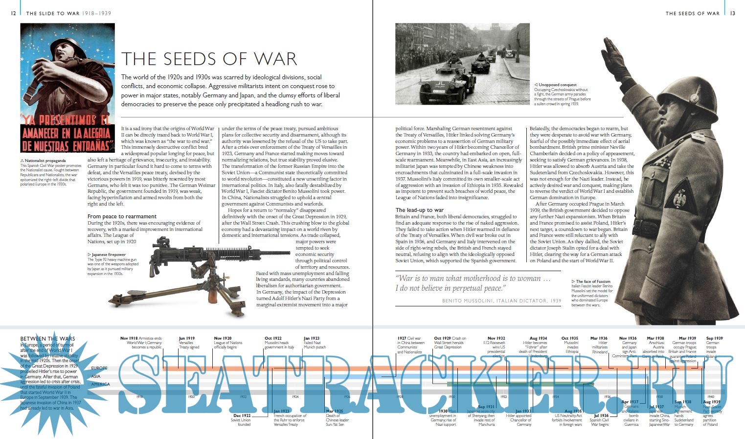 Historical maps from both Allied and Axis countries also offer unique insights into the events. There are timelines to help you follow the story as it unfolds, while narrative overviews explain the social, economic, political, and technical developments at the time. Fascinating, large-scale pictures introduce topics such as the Holocaust, blitzkrieg, kamikaze warfare, and code-breaking.