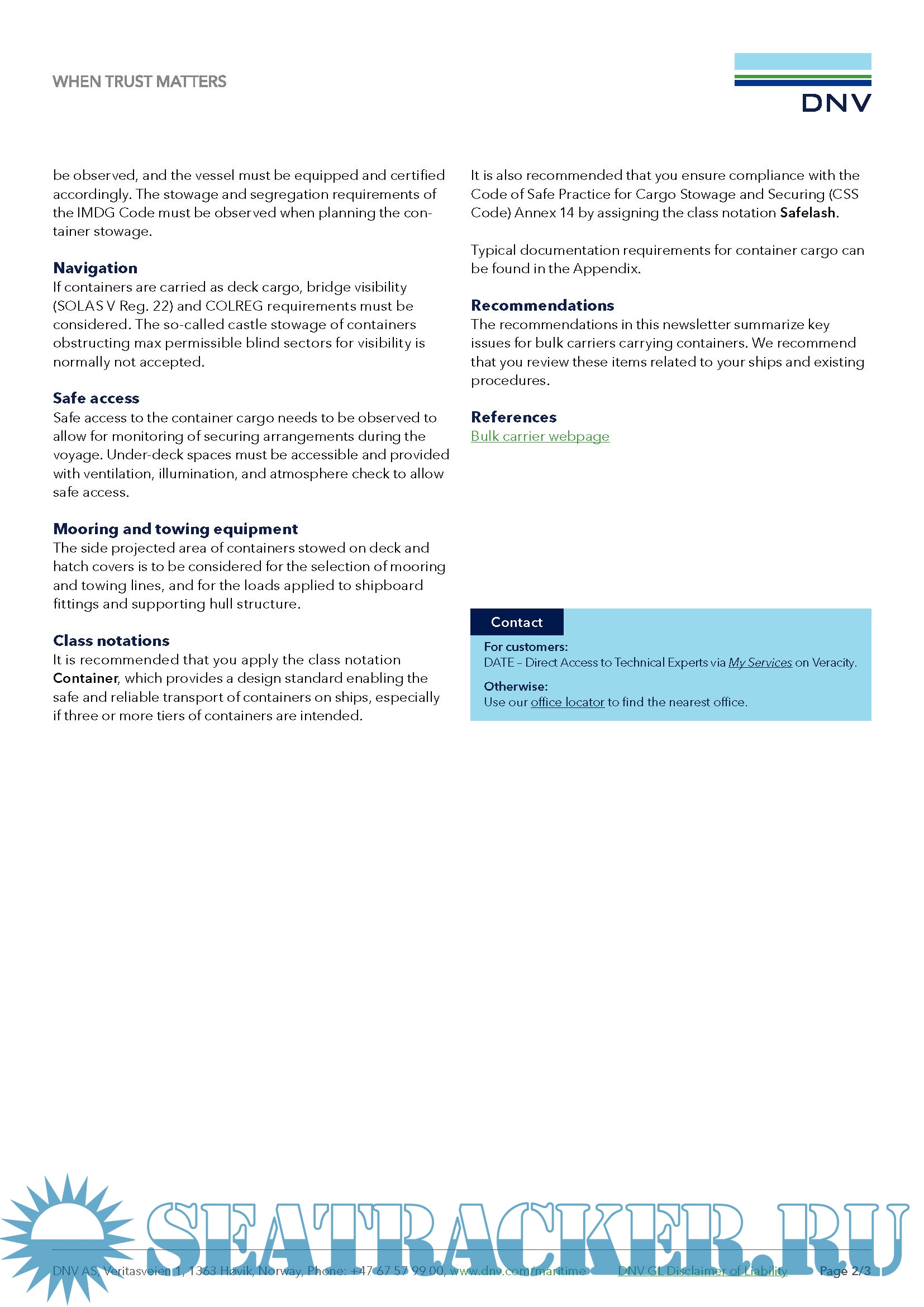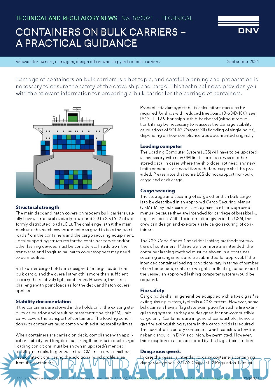 Containers on Bulk Carriers – a Practical Guidance