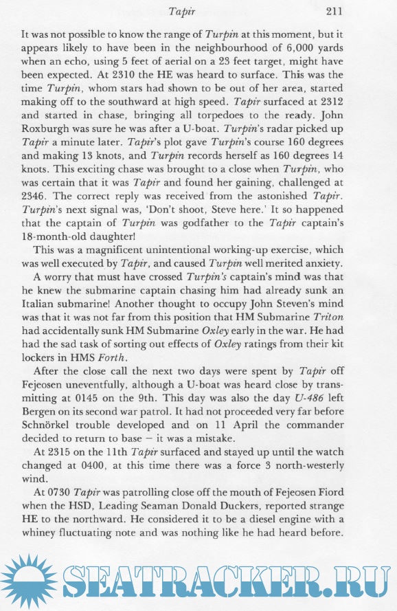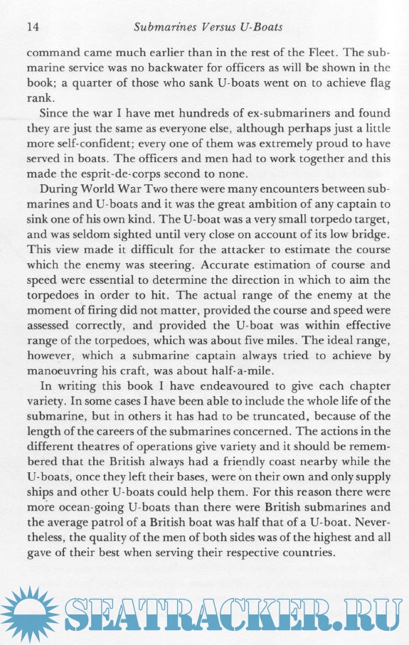 Description: A very well researched and engaging book that details the sinking in World War II of 15 U-boats (U-36,U-63, U-51,U-374,U-335, U-301, U-644, U-303, U-308, U-431, UIT-23, U-987, U-859, U-771, U-864, and U-486) by British submarines; and 3 British submarines lost to U-boats U-4, U-34, and U-123. Each chapter (one for each sinking) includes a brief background of the boats involved, including details of manufacture, commissioning and biographical details of the commanders, as well as the circumstances leading up to the attacks and, in a number of cases, diagrams of the attack run. There are photos throughout the book, though these are predominately of the Royal Navy submarines involved. The lack of a bibliography is the only minus.