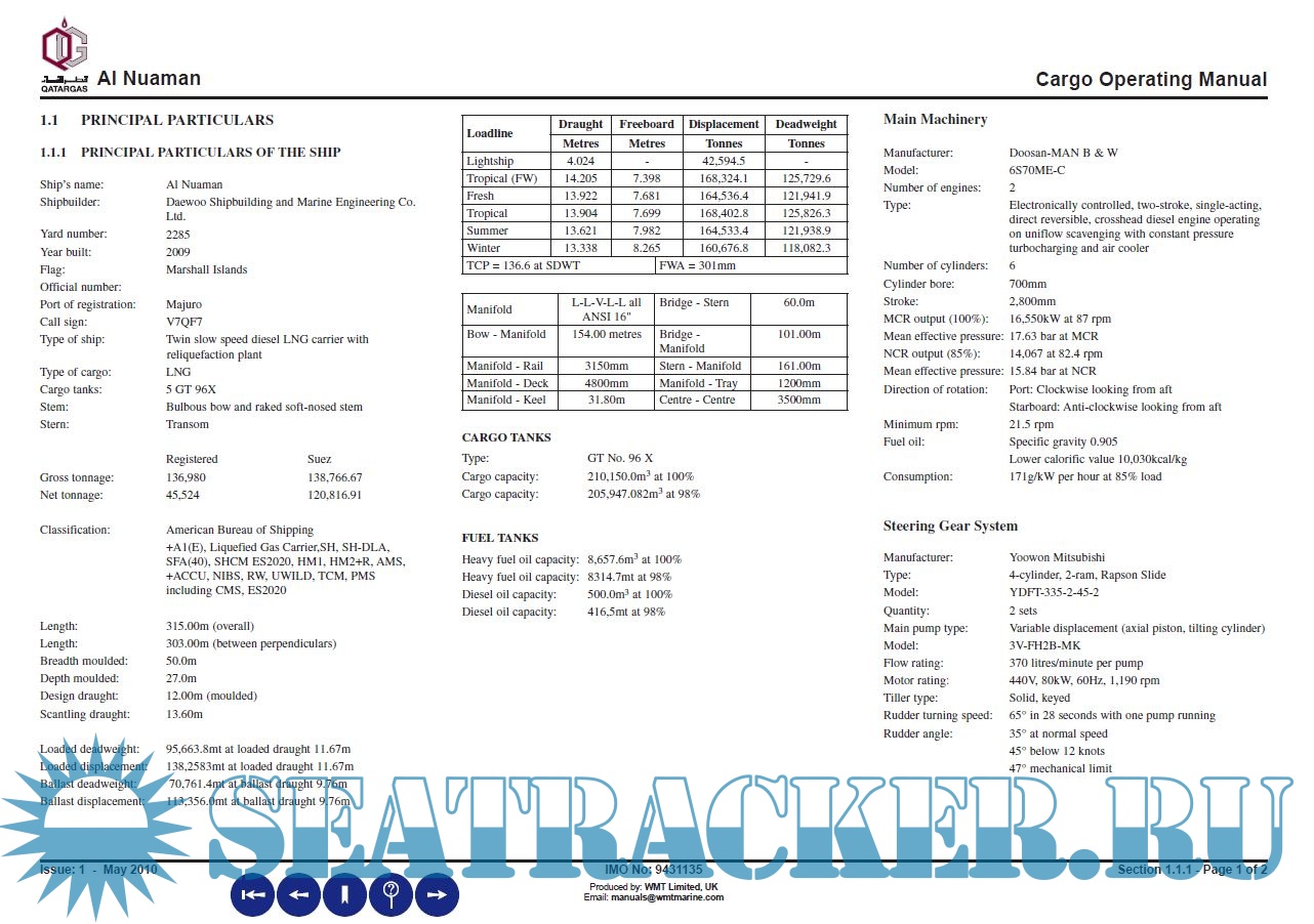 LNG Al Sheenaniya Cargo and Machinery Operating Manual - Nakilat Qatar Gas [2010, PDF]