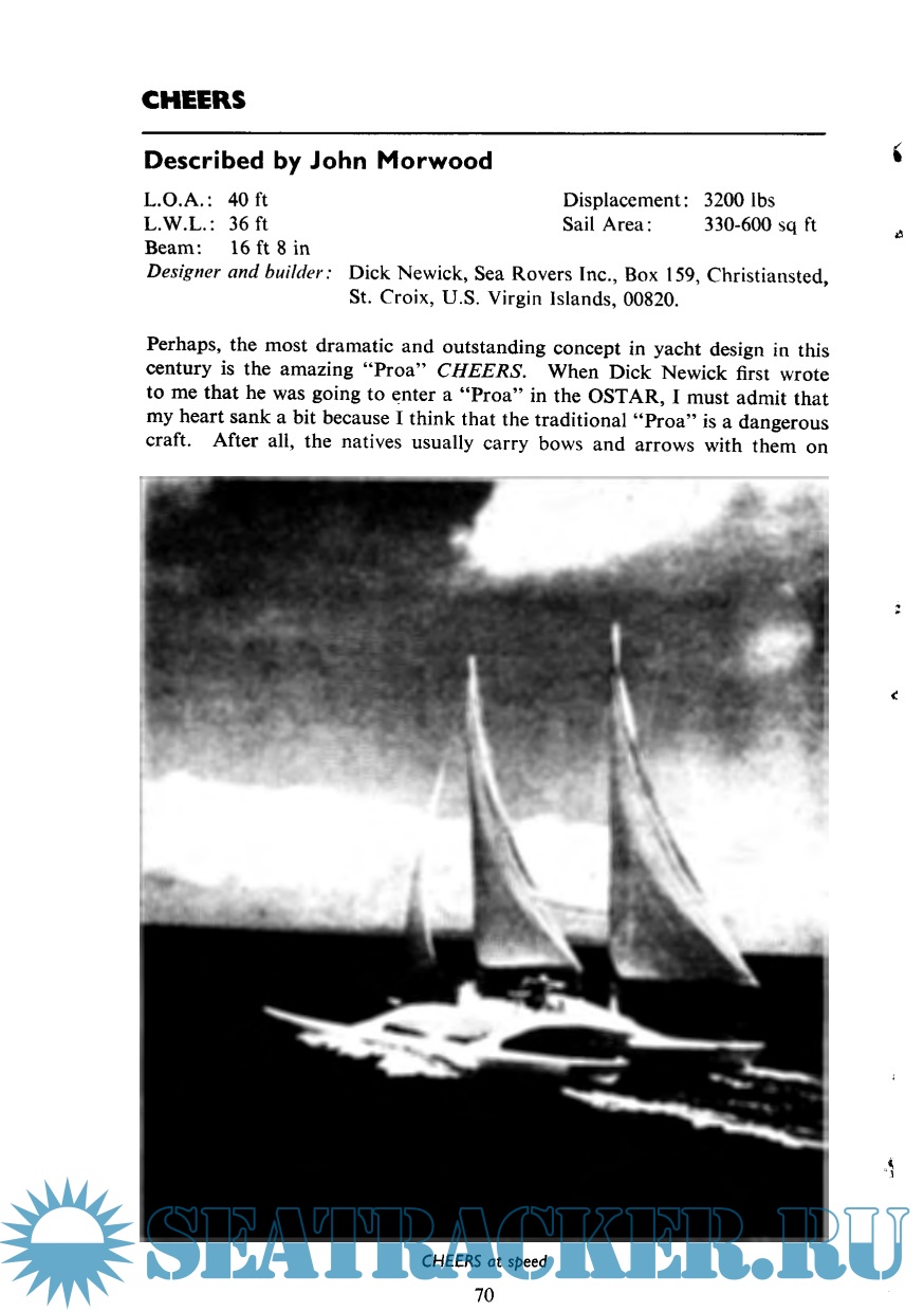 Year: 1970 Language: english Author: A.Y.R.S. Genre: Collection of books Publisher: A.Y.R.S. Format: PDF Quality: Scanned pages Pages count: 108 Description: The AYRS is a UK registered Educational Charity (No 234081) dedicated to finding out how to make yachting better (faster, more fun, whatever you want it to be). Our members run from sober sided professional yacht designers and builders to bearded eccentrics full of ideas that they cannot make work.From our members have come the modern sailing multihulls, self-steering gear, sailboards, a flock of successful sailing hydrofoils, the World Speed Sailing Record system, etc. Now people are taking off with kiteboats and autogyro-sails, and the first amphibious bicycle.