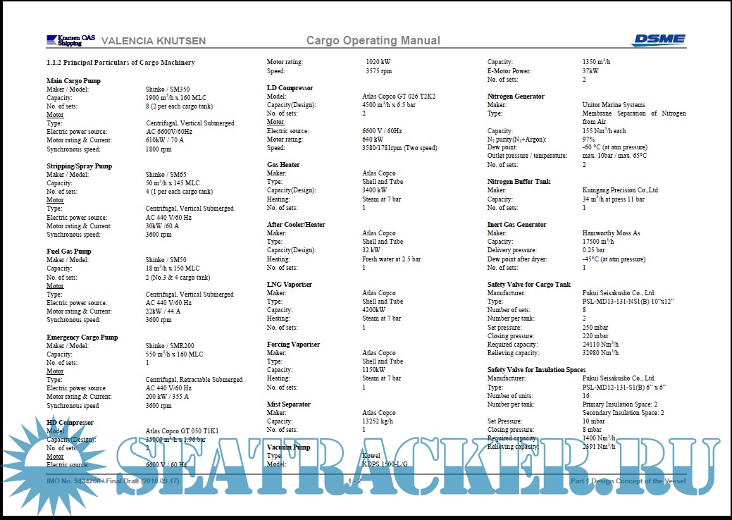 LNGC Barcelona Knutsen - IMO 9401295 – Machinery Operating Manual - DSME [2010, PDF]