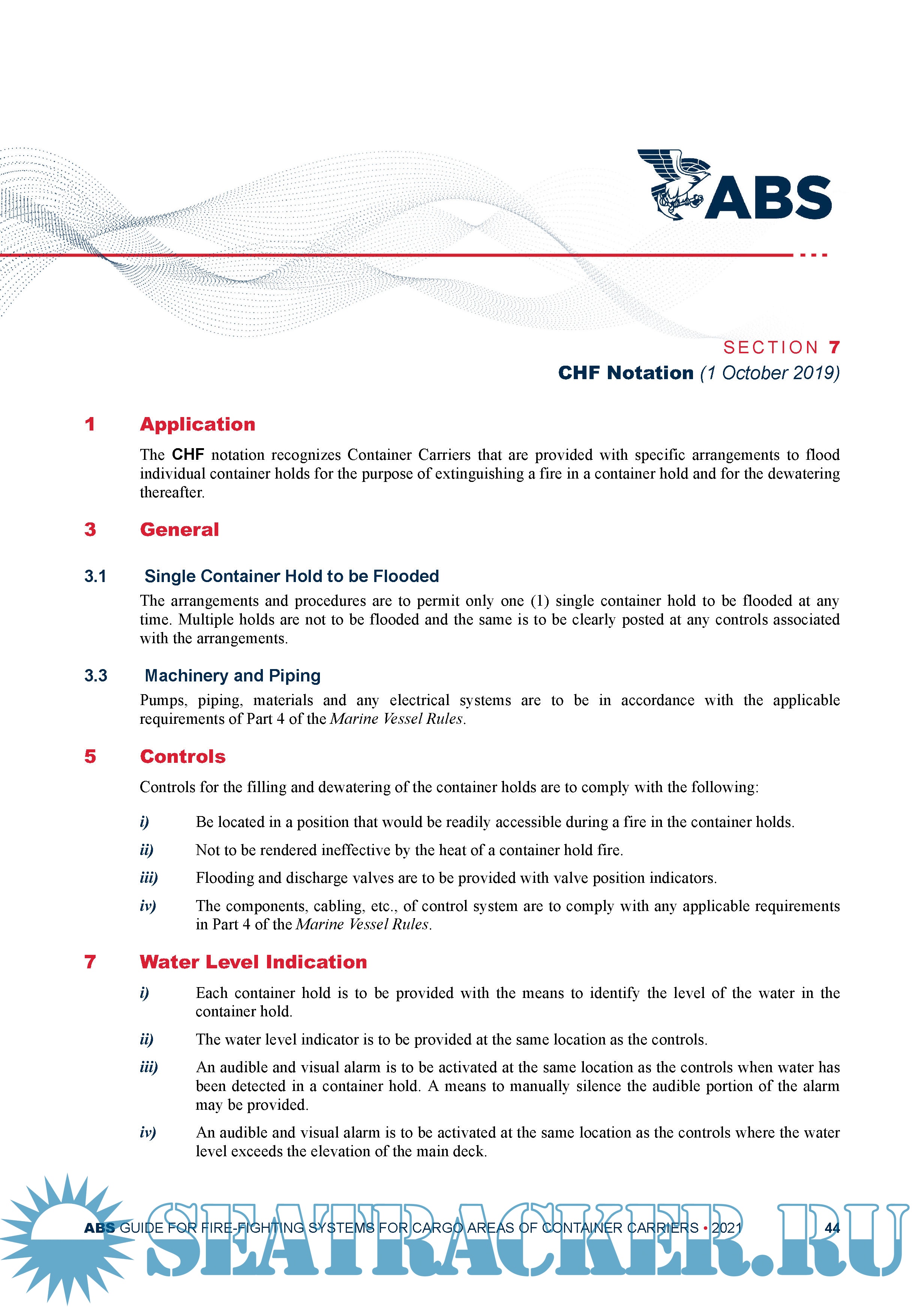Year: 2021 Language: english Author: ABS Genre: Guide Format: PDF Quality: eBook Pages count: 59 Description: This Guide identifies the required criteria for obtaining the optional notations for Container Carriers. This Guide is for the use of designers, builders, owners and operators in the marine industry. Container Carriers have grown much larger in recent years and the volume of cargo carried has expanded significantly. Fires involving containers, especially with the volume of cargo now being carried, can present a substantial risk to the safety of the crew and the vessel. The requirements of SOLAS Chapter II-2 Regulation 10 have been revised in accordance with IMO Resolution MSC 365(93) to address the risk and came into effect for ships designed to carry containers on or above the weather deck, constructed on or after 1 January 2016. While the basic SOLAS requirements are incorporated by reference in the ABS Rules for Building and Classing Marine Vessels (Marine Vessel Rules), this Guide has been developed to provide for further enhancement of the fire-fighting and fire protection capabilities for cargo areas of Container Carriers beyond that required by SOLAS. Release Date: September, 2021