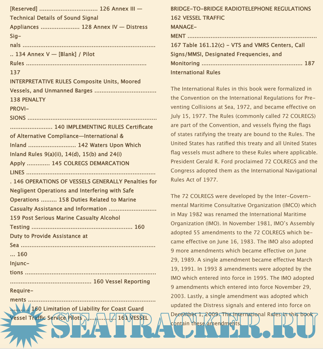 Year: 2020 Language: english Author: USCG Genre: Handbook Format: EPUB/MOBI/AZW/PDF Quality: Unknown Pages count: 444 (Print length) Description: Current edition of Navigation Rules & Regulations Inland and International colregs. This book meets USCG carriage requirements, REQUIRED on-board all vessels over 12 meters, approximately 39 feet in length. Covers Inland Navigation Rules and Current edition of Navigation Rules & Regulations Inland and International colregs. Used for USCG licensing exams, the principles described in this book are critical for safe navigation. Paradise Cay Publications offers Notice to Mariners changes incorporated within the text for the best up-to-date version of this publication. MORE ABOUT NAV RULES: International Regulations for Preventing Collisions at Sea. Used for USCG licensing exams, the principles described in this book are critical for safe navigation. Paradise Cay Publications offers Notice to Mariners changes incorporated within the text for the best up-to-date version of this publication. The Navigation Rules & Regulations Handbook (Nav Rules) contains the essentials of boating protocol and safety. It is the reference manual every boat should carry and every skipper should be intimately familiar with. So valuable in fact the US Coast Guard REQUIRES a copy on board all vessels 12 meters (approximately 39') or more in lenght: 34;33 CFR 83.01(g) requires: 'The operator of each self-propelled vessel 12 meters or more in length shall carry, on board and maintain for ready reference, a copy of these Rules.' This handbook is a compendium produced by the U.S. Coast Guard Navigation Standards Branch, U.S. Coast Guard Headquarters, Washington, DC, of the: International Regulations for Preventing Collisions at Sea, 1972 (72 COLREGS); Inland Navigation Rules (33 CFR 83); their respective technical annexes (33 CFR 84-90); COLREGS Demarcation Lines (33 CFR 80); Vessel Bridge-to-Bridge Radiotelephone Regulations, (33 CFR 26); Vessel Traffic Management Regulations (33 CFR 161); and, various other pertinent provisions of the U.S. Code and Code of Federal Regulations regarding compliance and penalties associated with the Navigation Rules.