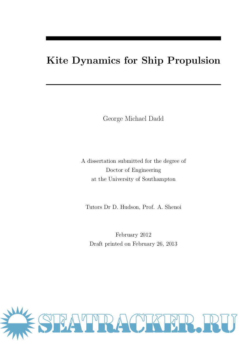 Description: Kite propulsion has emerged as an attractive means to harness wind power in a way that yields environmental and financial benefits. An understanding of the dynamics that affect kite motion and the resulting forces is required to facilitate the design and optimization of kite propulsion systems.