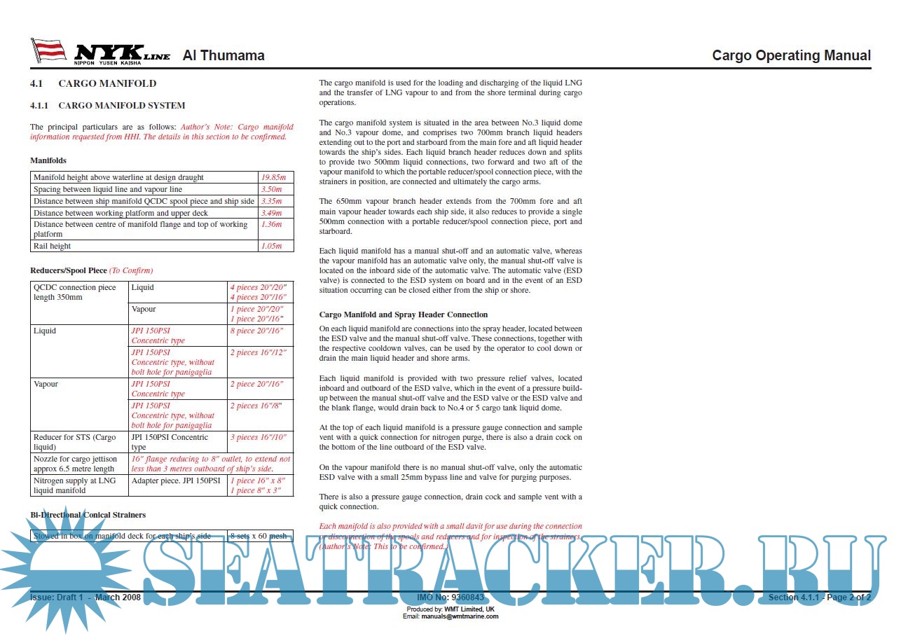 Year: 2008 Language: english Author: NYK Line Genre: Manual Publisher: Worldwide Marine Technology Format: PDF Quality: eBook Pages count: Multiple Description: Cargo, Deck and Machinery operating manuals for NYK Line LNGC Al Thumama.