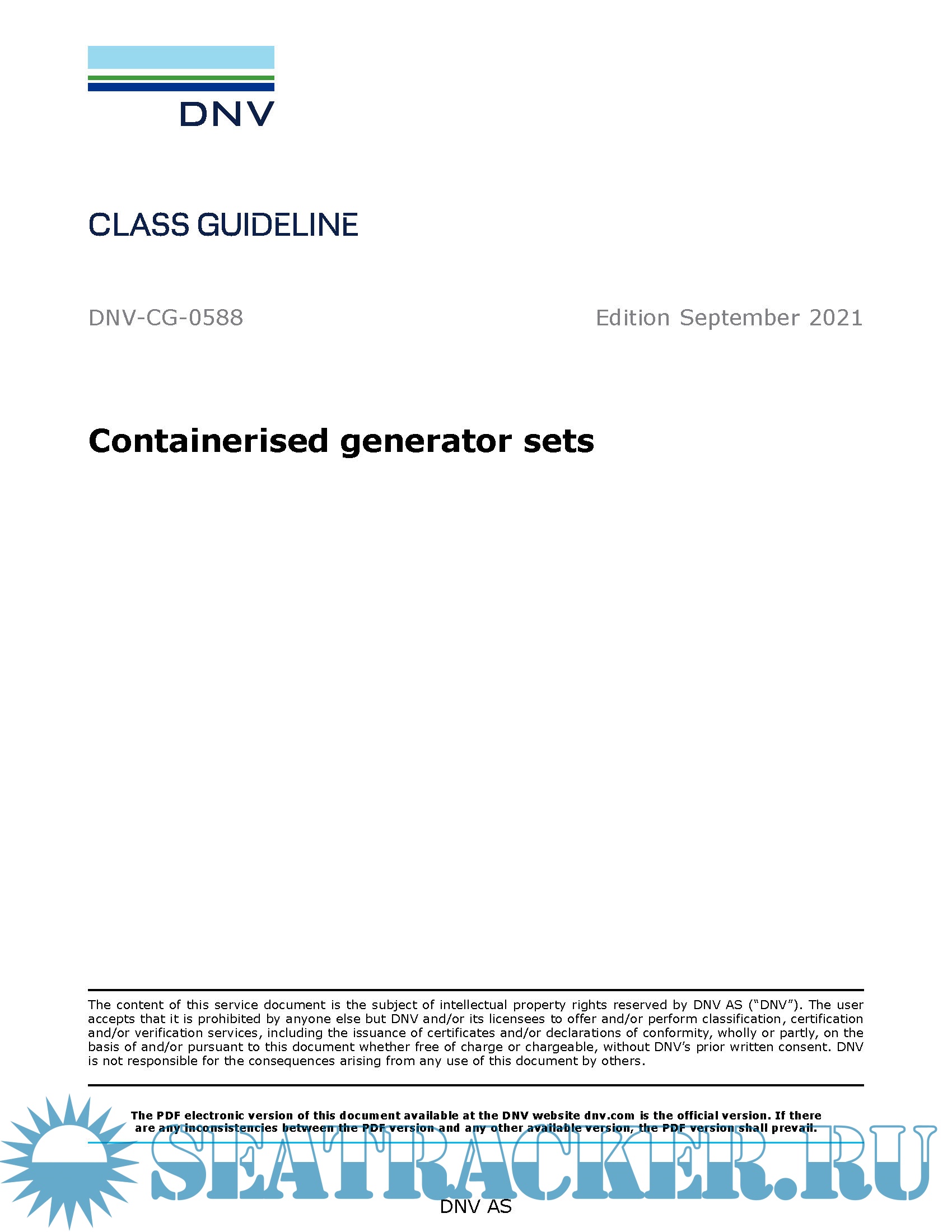 Year: 2021 Language: english Author: DNV Genre: Guide Format: PDF Quality: eBook Pages count: 17+1 Description: Whether you are a ship manager in need of temporary additional or replacement power, or a supplier to the maritime industry renting out containerised generator sets, we recommend you acquaint yourself with the content of the new Class Guideline to ensure a smooth installation of a containerised generator set. This Class Guideline gives a more comprehensive overview of the requirements for installation than the referred news from 2016. Furthermore, it does not only cover the use of a CGS in case of damage to an auxiliary generator, but also the use of a CGS in case of damage to the emergency generator and the use of a CGS as a temporary additional source of power, for example for additional reefer cargo or seismic equipment.