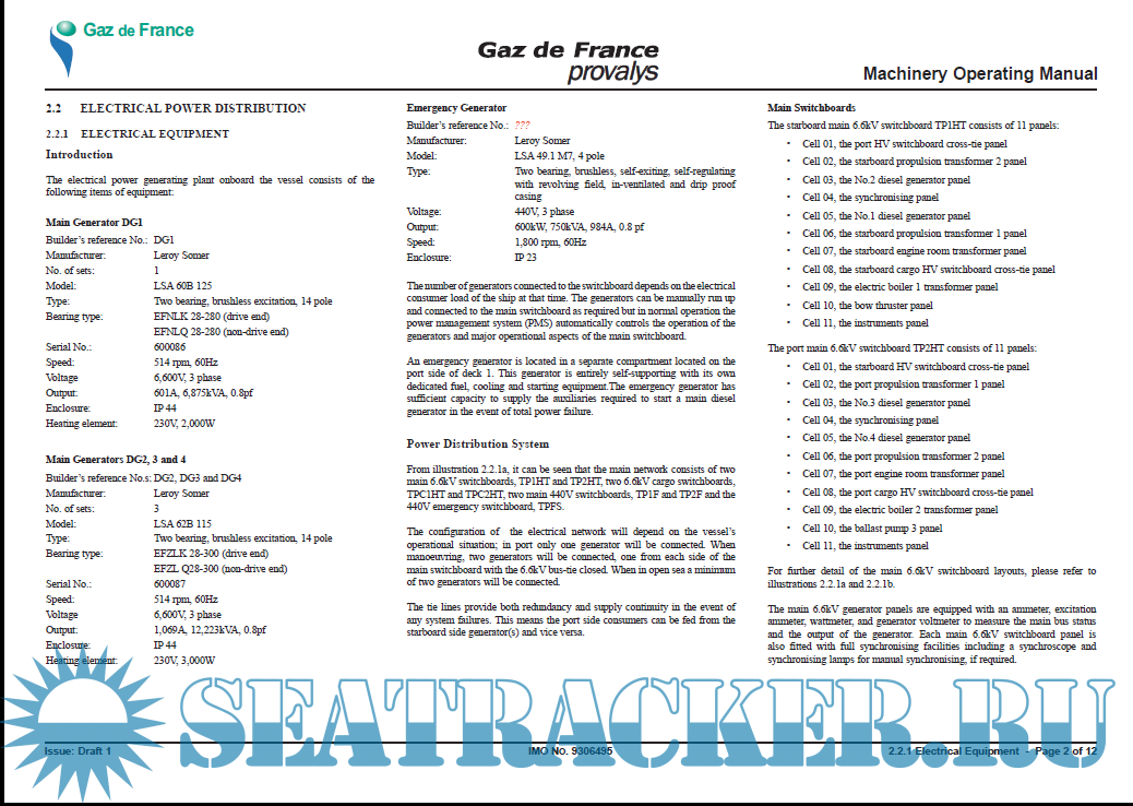 LNGC PROVALYS - IMO 9306495 - ELECTRICAL POWER DISTRIBUTION