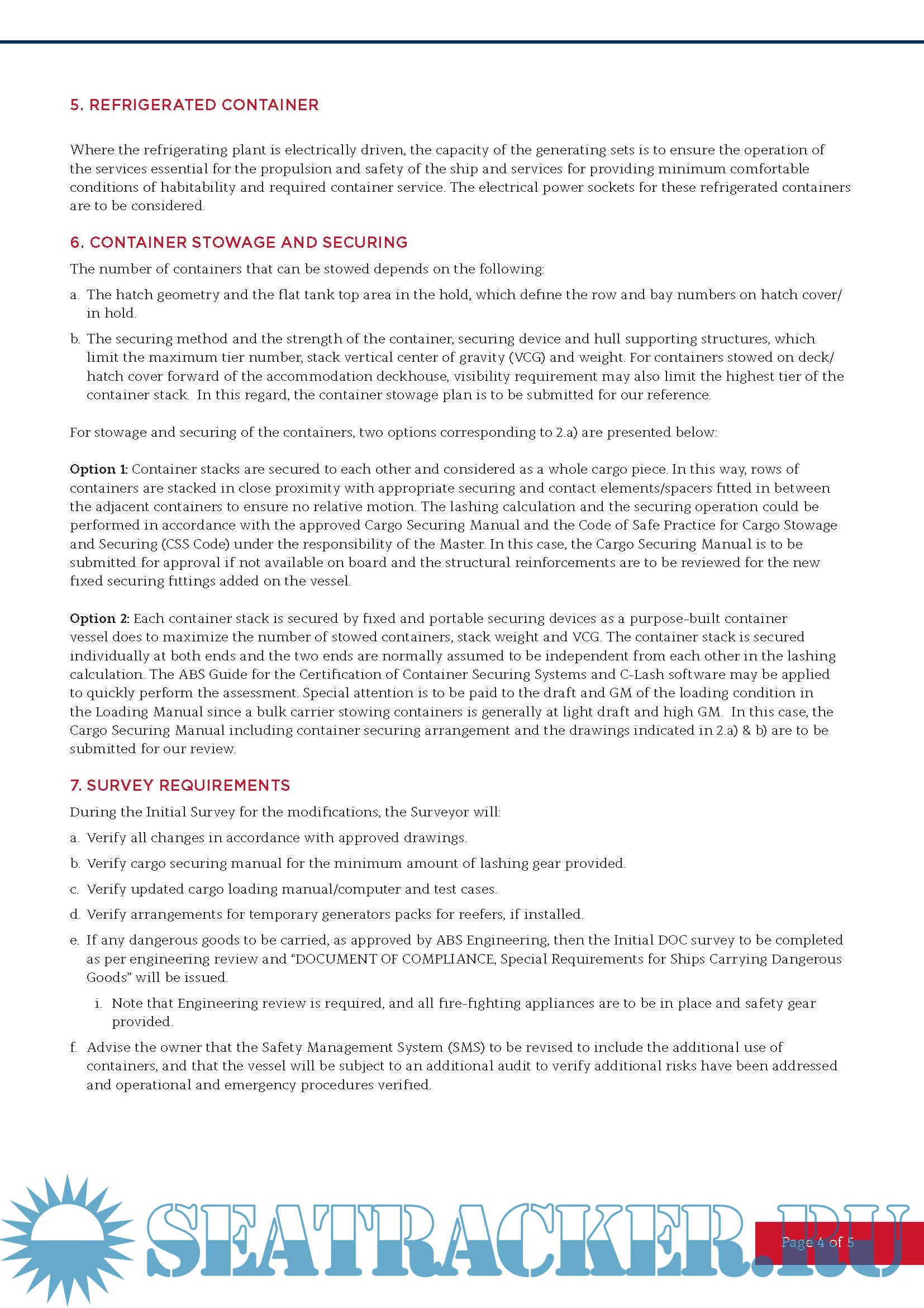 Year: 2021 Language: english Author: ABS Genre: Textbook Edition: November, 2021 Format: PDF Quality: eBook Pages count: 6 Description: The following instructions are provided for the conversion of a bulk carrier to a vessel capable of loading containers. Current market conditions are allowing for bulk carrier owners to explore the possibility of carrying containers either in their holds or on their hatch covers. While this practice can be acceptable, it does require engineering review and survey to ensure compliance with the appropriate Rules and Statutory Conventions. For each project the owner of the vessel or their representative is to submit the necessary information to demonstrate compliance with the items listed in this document.