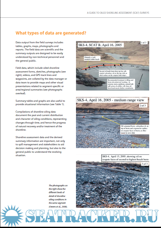 Description: Oiled shoreline assessment surveys—also known as Shoreline Clean-up Assessment Technique (SCAT) surveys—are a critical component of a response operation. The information gathered by the survey teams is used by the response managers to set objectives, priorities, constraints and end points, all of which are essential in supporting the planning, decision making and implementation of an effective shoreline response programme.