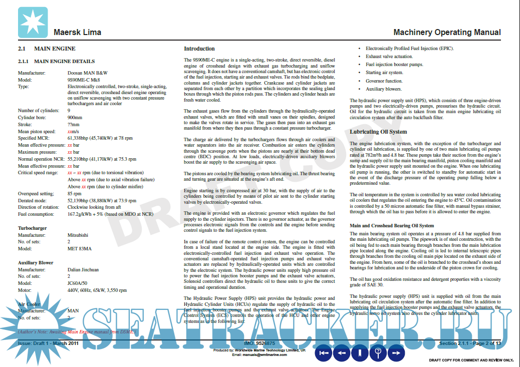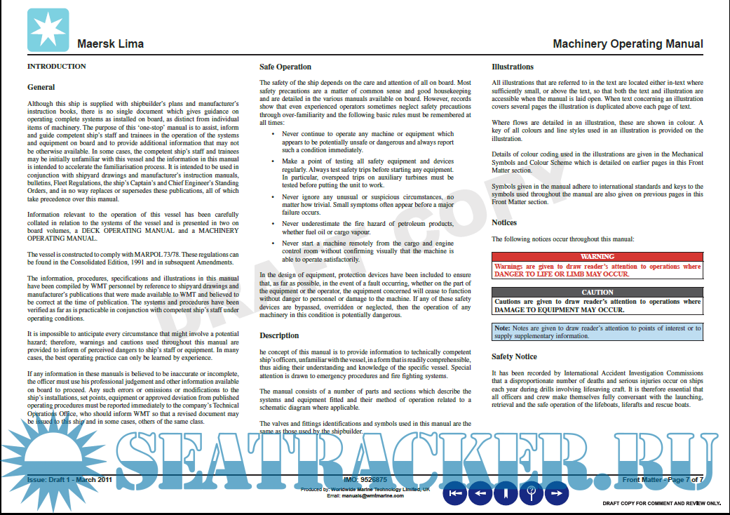 Container MV Maersk Lima - IMO 9526875 - Machinery Operating Manual