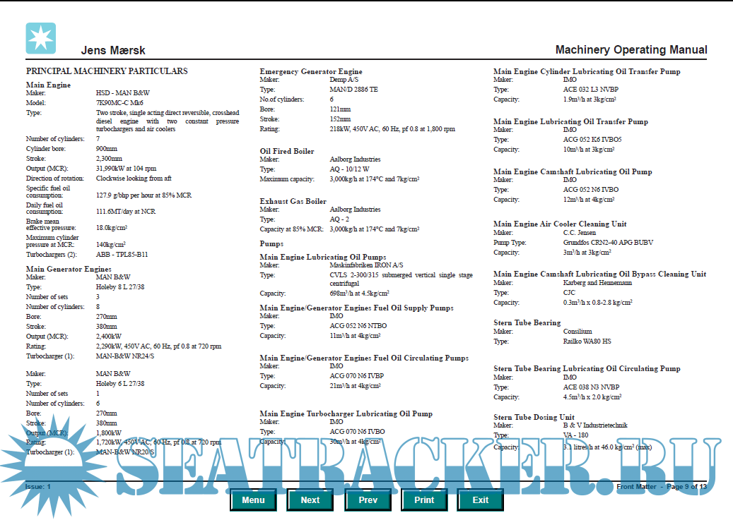 CPT Maersk Ramsey – IMO 9275268 - Machinery Operating Manual - DALIAN SHIPYARD [2004, PDF]