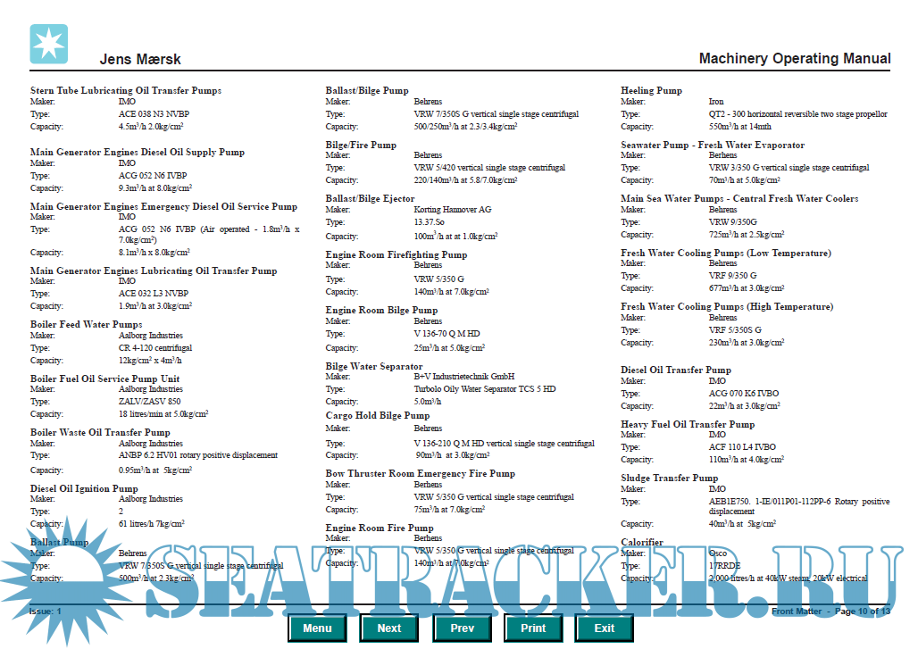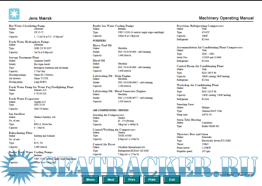 OPT Rita Mærsk: Machinery Systems Manual - Mærsk [2000, PDF]