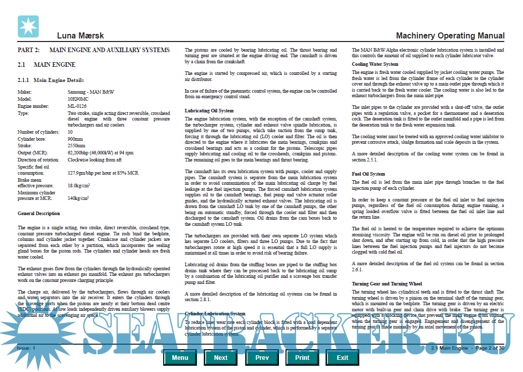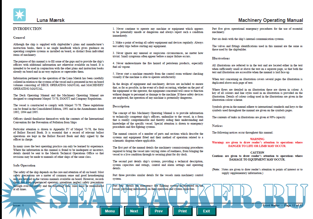 Container MV Luna Maersk - IMO 9190781 - Machinery Operating Manual