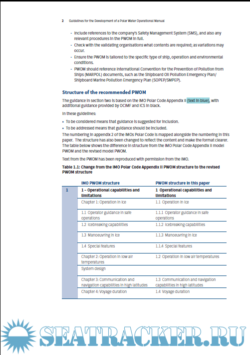 Description: The International Maritime Organization (IMO) Polar Code entered into force on 1 January 2017. It requires ships operating in polar waters to submit a Polar Water Operational Manual (PWOM) to be able to obtain a Polar Ship Certificate. ICS and OCIMF members consider that how a ship is operated in Polar waters, and especially in ice, is a critical aspect for safe operations.