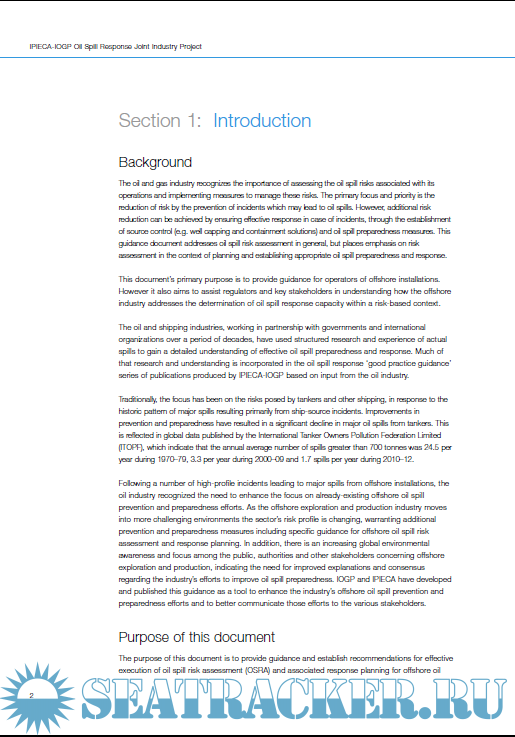 Year: 2013 Language: english Author: IPIECA - IOGP Genre: Guide Format: PDF Quality: eBook Pages count: 152 Description: This report provides guidance for offshore installations, concerning the process of oil spill risk assessment (OSRA) and establishing or identifying suitable resources to enable an effective and efficient response to potential oil spill incidents. The process and methods in the report describe how information from an OSRA can be used as a logical and transparent basis for oil spill response planning. Whilst the oil industry’s primary focus remains the prevention of incidents leading to oil spills, it is recognized that preparedness and response to spills is an essential part of risk management. The guidance in this report aims to assist operators of offshore installations to develop and implement risk-based planning for oil spill incidents.