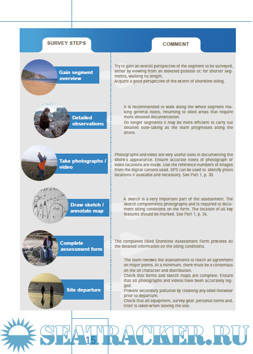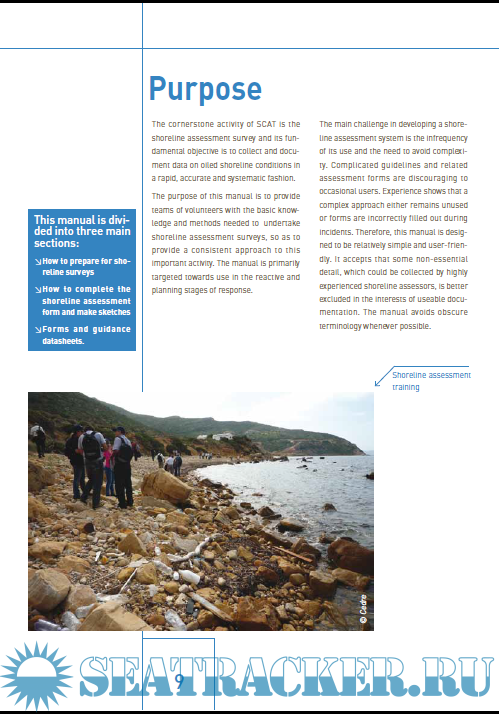 The primary approaches from which these guidelines are derived are those utilised within the Shoreline Cleanup Assessment Technique (SCAT), originally developed by Environment Canada and then adapted in different countries by NOAA, UK MCA, Cedre, AMSA...