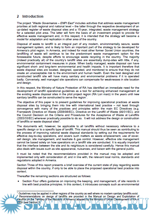 Description: The project “Waste Governance – ENPI East” includes activities that address waste management priorities at both regional and national level – the latter through the respective development of an up-dated register of waste disposal sites and a 15-year, integrated, waste management strategy for a selected pilot area. The latter will form the basis of an investment project to provide for effective waste management and, in this respect, it is intended that the strategy will become a model for adaptation and replication in other area of the country.
