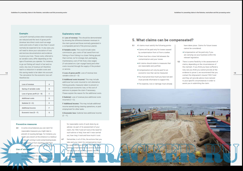 Description: Anybody who has suffered losses due to oil pollution in one of the Member States of the 1992 Fund caused by an oil tanker can claim compensation for these losses. In this booklet, however, only claims from the fisheries sector (fish catching, fish farming, mariculture and other businesses related to fishing) are considered