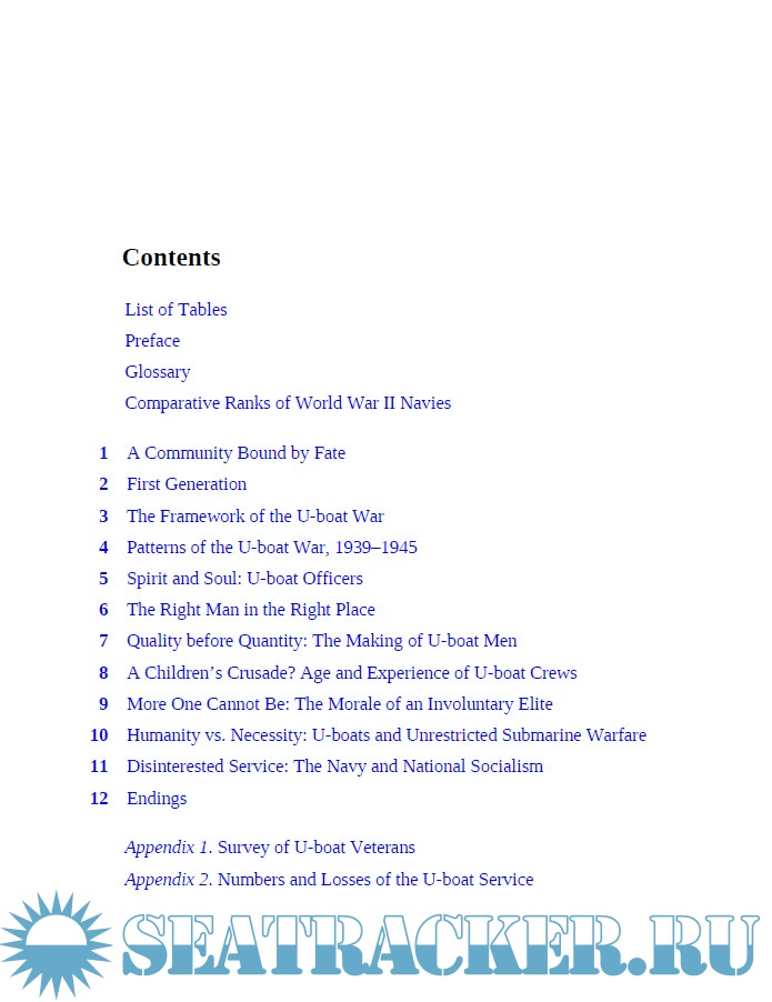 Mulligan found striking similarities in the men's geographic and social origins, education, and previous occupations, particularly within the specialized engineering and radio branches of the submarine force. The information he gathered establishes quantifiable patterns in age, length of service, and experience, as well as the organization's overall recruitment policies and training standards. The numbers and losses of U-boat personnel are also fully examined.