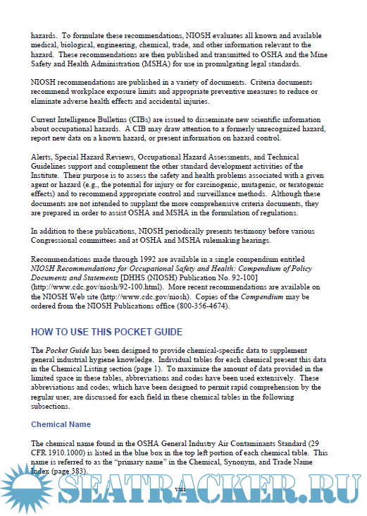 NIOSH - POCKET GUIDE TO CHEMICAL HAZARDS