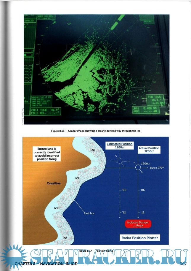 Navigation in ice is one of the most challenging tasks a mariner may face. The navigator is concerned with the physical dangers of the ice and the restrictions imposed on the ship, in terms of route, speed and endurance. The need to protect those on board, whether from the risk of collision with an iceberg or more generally from exposure to hazardous climatic conditions, must be ever present in the mind of the navigator.