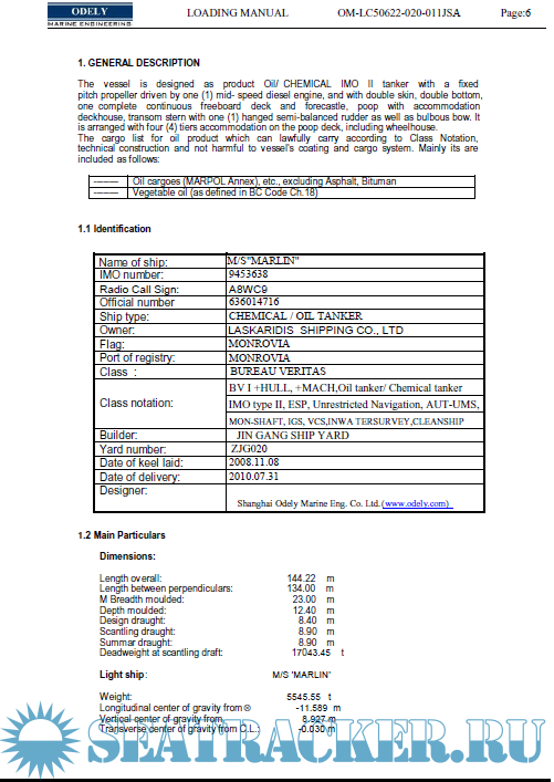 Description: Oil/Chemical IMO II Tanker 16500 DWT Product Loading Manual