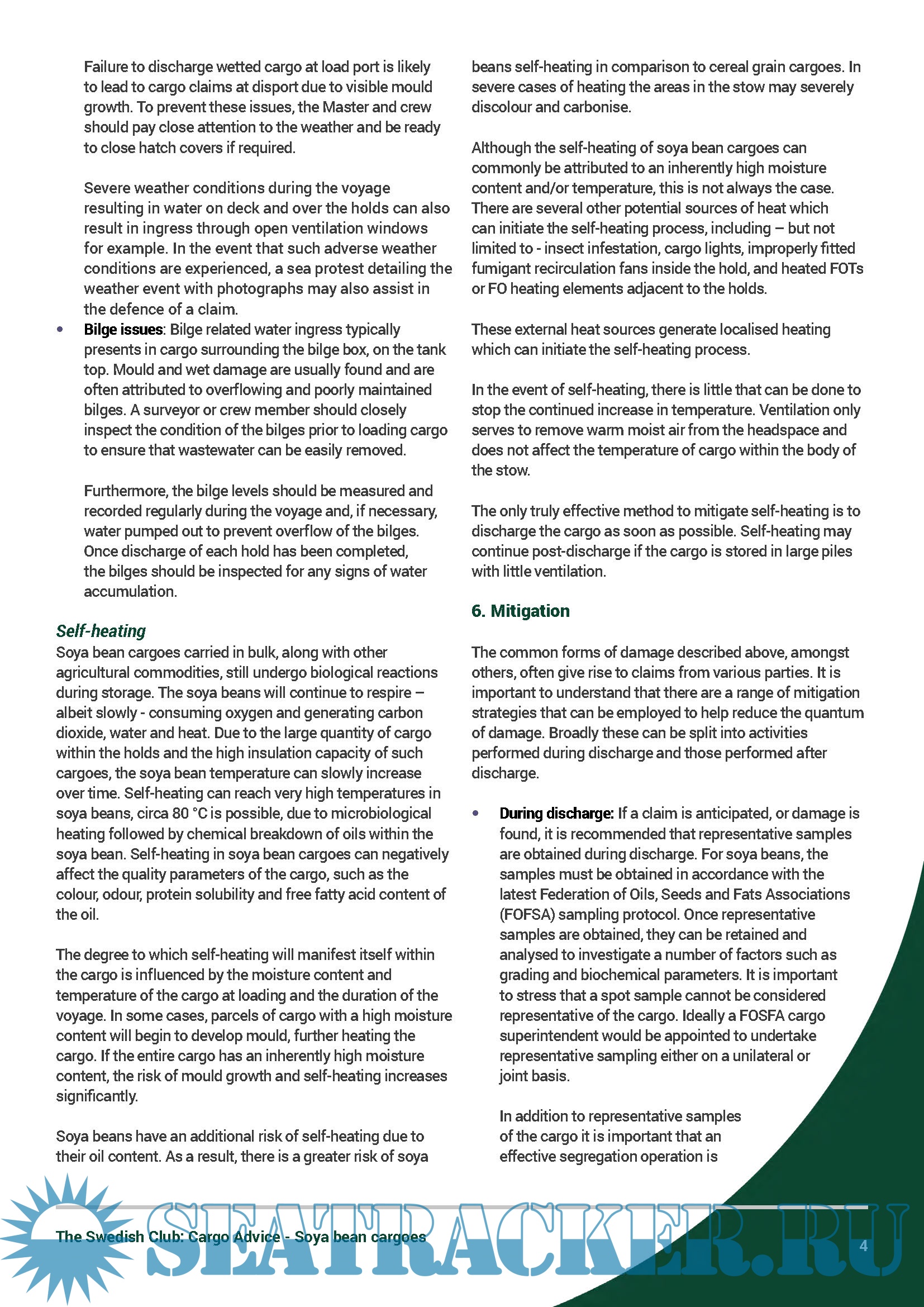 Guidelines for the shipment of Soya bean cargoes by The Swedish P&I Club