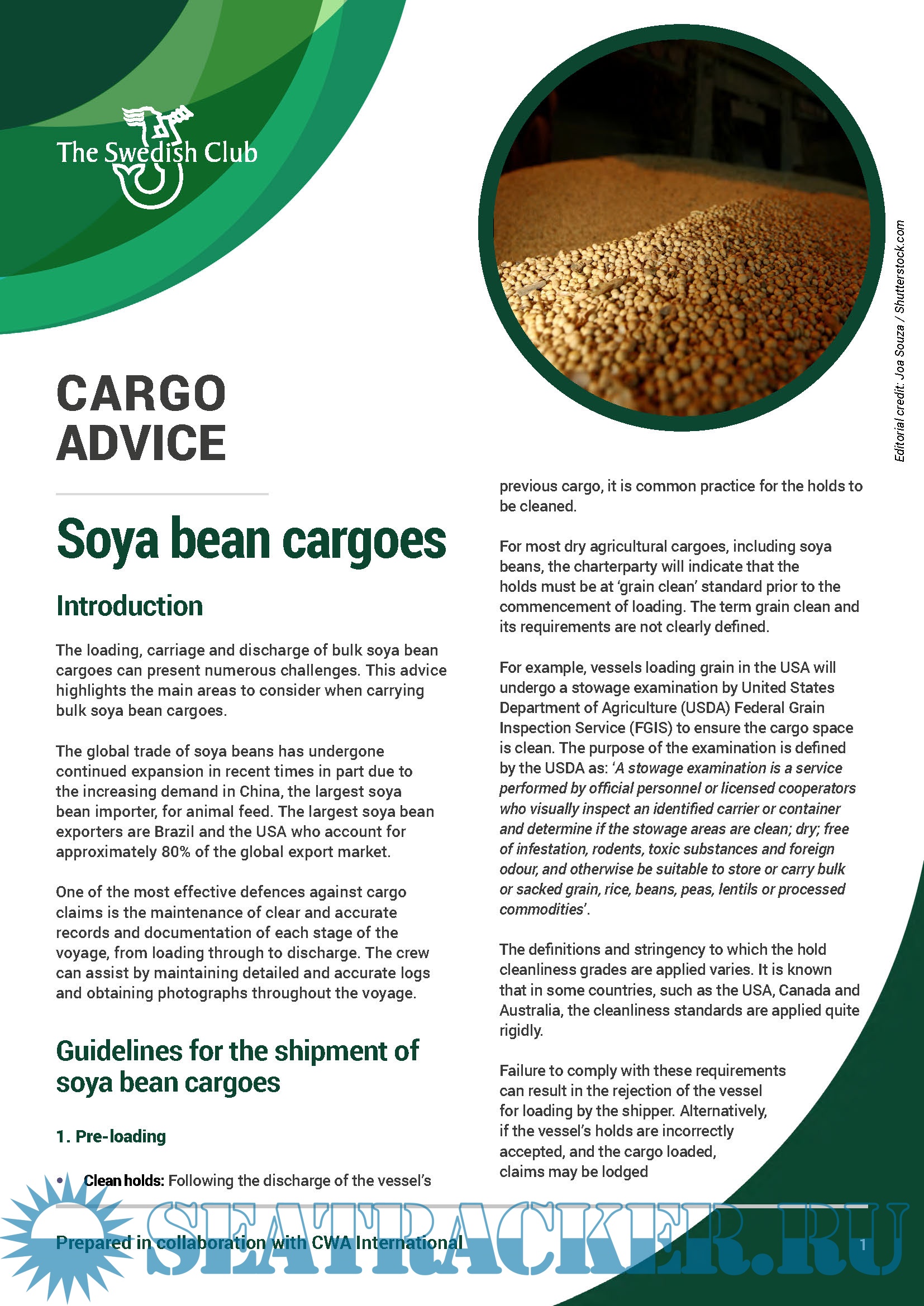 Description: The Swedish Club recently launched a cargo advice Guide, focusing on Soya bean cargoes shipments.