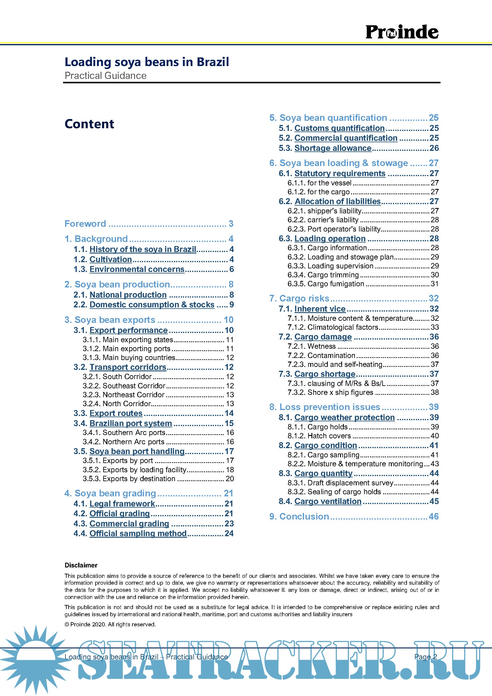 Year: 202x Language: english Author: Ricardo Martins Genre: Guide Publisher: Proinde Format: PDF Quality: eBook Pages count: 47 Description: World’s most consumed oilseed, soya bean is also the most cultivated and profitable crop in Brazil and the main item on the export basket. Second only to iron ore in volume, soya bean exports increased almost two-fold over the last decade due to the expansion of harvested area and use of advanced agricultural technology that boosted the productivity. To help owners and associates better understand how the soya bean has become a vital commodity for agribusiness and Brazil’s domestic economy, we have prepared this guide to look at the history and importance of the versatile oilseed, its cultivation and production, and the journey of the beans from the fields in central Brazil to the other side of the globe. We explain the national grading standards and the framework for quantification, loading and stowage of grain cargoes, as well as the liabilities involved.