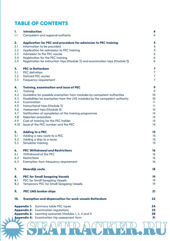 Year: 2021 Language: english Author: Rotterdam Port Authority Genre: Guide Format: PDF Quality: eBook Pages count: 32 Description: This information guide contains information about the procedures and preconditions for obtaining an exemption from compulsory pilotage in the Rotterdam-Rijnmond seaport region. This region consists of two seaport areas: the Rotterdam-Rijnmond-South-Holland-hinterland seaport area and the Scheveningen seaport area. In this guide, the English term ‘Pilotage Exemption Certifcate’ (PEC) is used for this exemption. The contents of the training course on which participants will be tested can be found in the study material made available by the Loodswezen Rotterdam Rijnmond (LRR) pilotage association. For a long time, it has been possible to exempt masters from compulsory pilotage. As a result, extensive experience has been gained in Rotterdam with the applicable admission criteria, the training programme, examinations and the setting of limits for the weather and other conditions for a PEC. The law amending the Shipping Traffc Act, the 2021 Pilotage Decree and the 2021 Pilotage Regulations will come into effect on 1 January 2021. These replace the current compulsory pilotage legislation of 1995 and will result, among other things, in the introduction of a new PEC structure. The register of small seagoing vessels and the dispensation option from compulsory pilotage for seagoing vessels up to 95 metres will disappear. In addition, the training course will change and from 1 January 2021 will consist of 5 modules for the regular PECs. The Pilotage Exemption Certifcate will be issued after all the modules have been successfully completed. This information guide has therefore been completely revised.