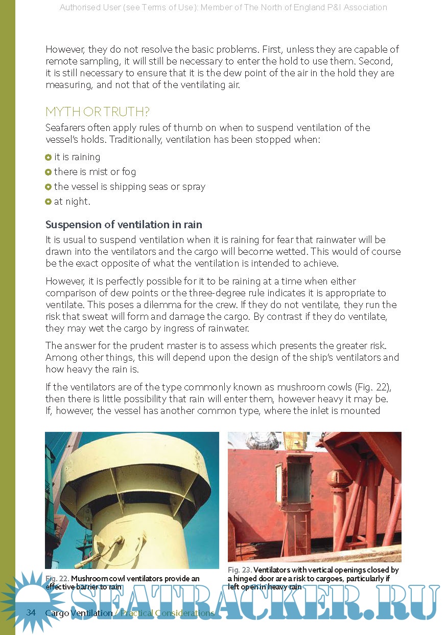 Year: 2020 Language: english Author: David Anderson, Daniel Sheard Genre: Guide Publisher: North P&I Club Edition: 2nd ISBN: 9780995565340 Format: PDF Quality: eBook Pages count: 50 Description: This publication is a guide to cargo ventilation best practice. This guide to cargo ventilation best practice explains how to avoid problems and disputes arising from the incorrect use of natural and mechanical hold-ventilation systems on cargo ships. It contains a quick reference section explaining what and when to ventilate, which is supplemented by more detailed chapters on practical guidance and considerations. It also includes a scientific background section, which outlines the underlying principles of cargo ventilation.