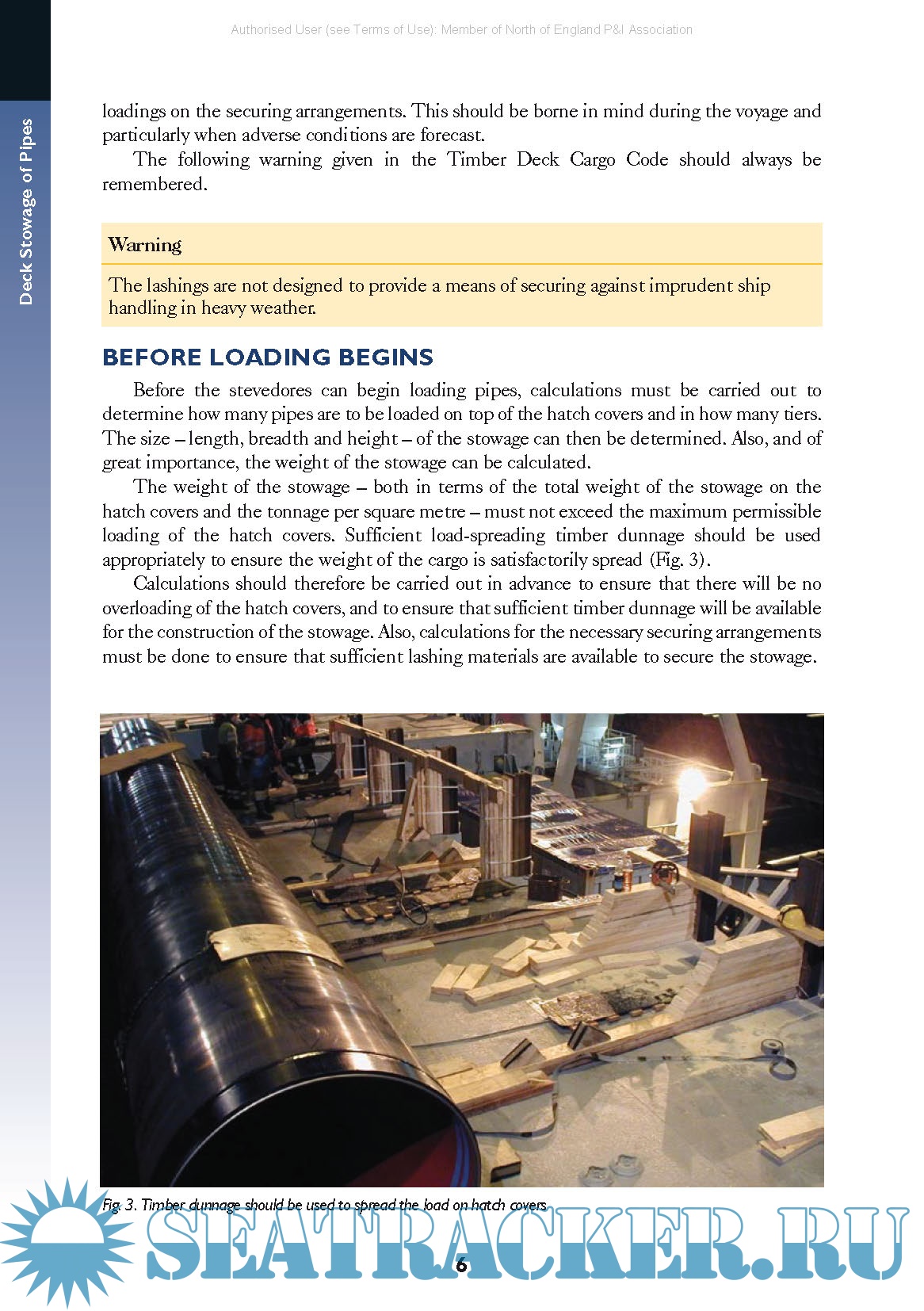 Before looking at the various technical aspects associated with securing a cargo of deck stowed pipes, the composition and vulnerabilities of the cargo should be studied. Large diameter pipes shipped by sea on deck are, in most cases, not simply pieces of break bulk but are highly sensitive and valuable items.