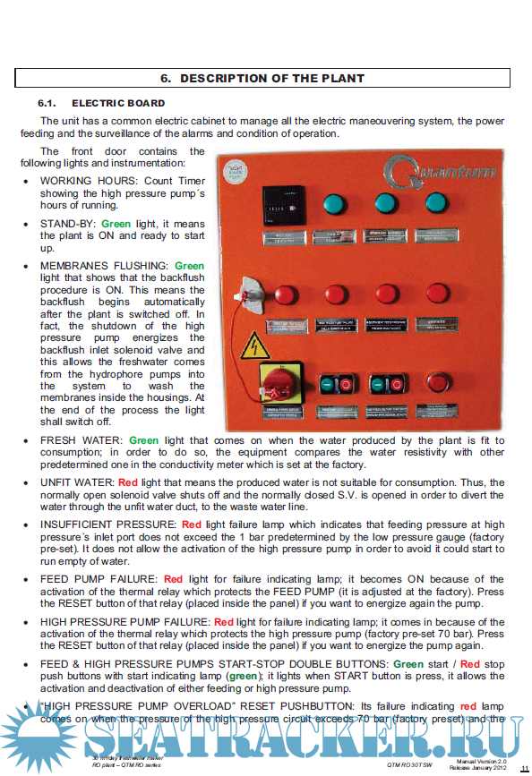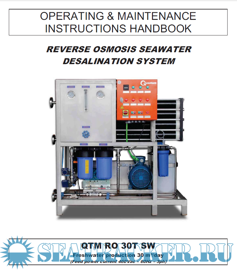 Year: 2012 Language: english Author: QUANTUM WATER ENGINEERING - Spain Genre: Manual Format: PDF Quality: eBook Pages count: 148 Description: Quantum is an engineering company focused on finding the right water treatment for your drinking and process waters. QUANTUM 30 TONs PER DAY SW DESALINATOR FW Generator For Marine Vessels. RO Plant Manual also includes. GRUNDFOS CM3-4 FEED PUMP CAT PUMPS 15 FRAME PLUNGER HP PUMP MODEL 1050. 1051, 1057 QUANTUM 2500P UV Sterilizer Manual.
