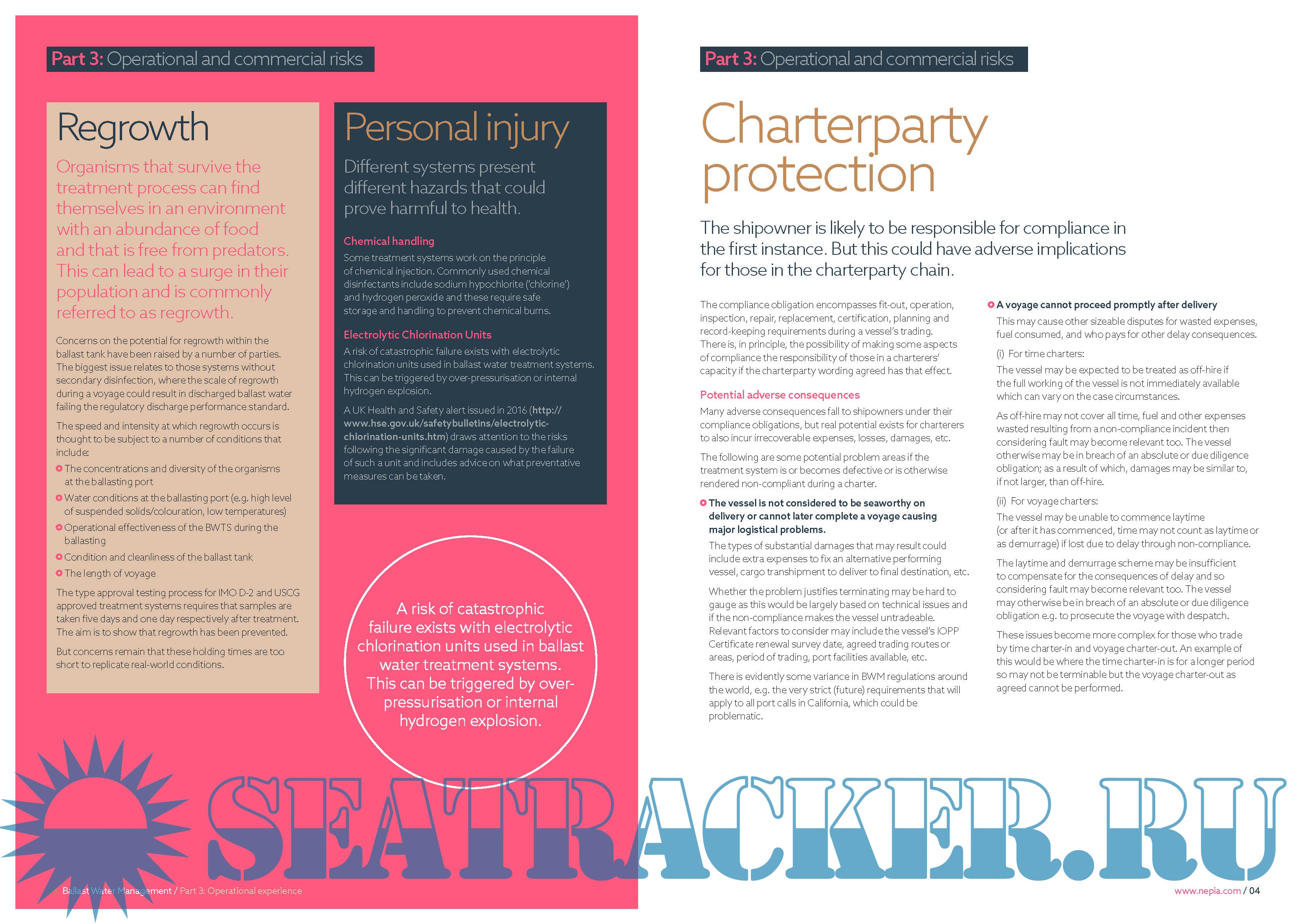 guidance on complying with ballast water regulations: • Part 1 looks at the regulatory landscape. • Part 2 considers the different treatment systems available. • Part 3 focuses on the potential operational and commercial impacts.
