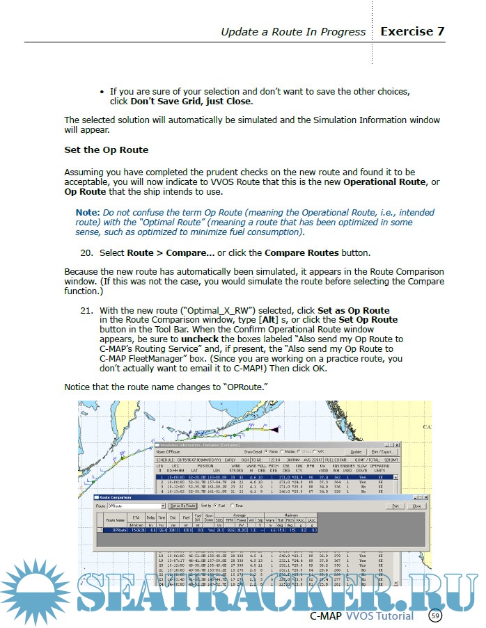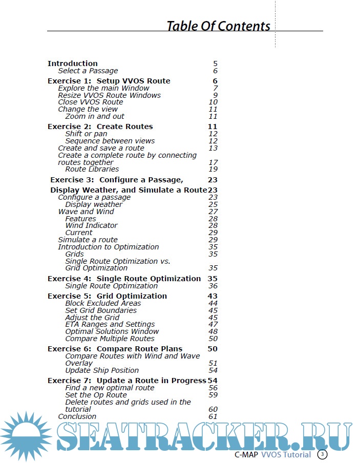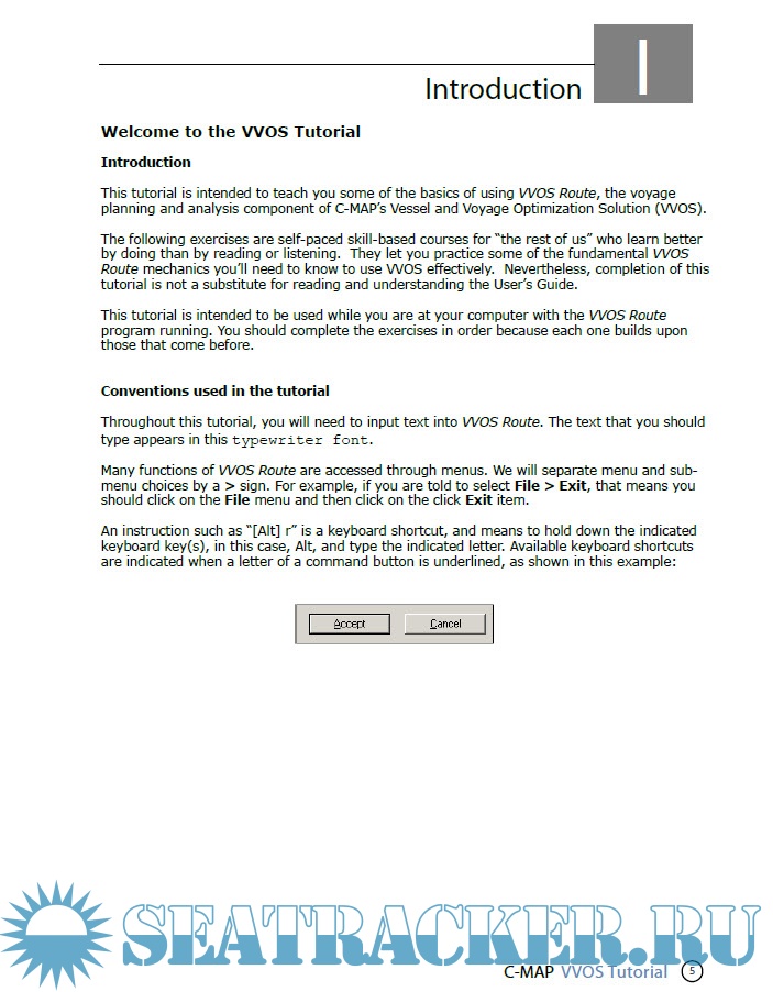 Year: 2xxx Language: english Author: CMap Edition: 2.3 Format: PDF Quality: eBook Pages count: 62 Description: This tutorial is intended to teach you some of the basics of using VVOS Route, the voyage planning and analysis component of C-MAP’s Vessel and Voyage Optimization Solution (VVOS). The following exercises are self-paced skill-based courses for “the rest of us” who learn better by doing than by reading or listening. They let you practice some of the fundamental VVOS Route mechanics you’ll need to know to use VVOS effectively. Nevertheless, completion of this tutorial is not a substitute for reading and understanding the User’s Guide. This tutorial is intended to be used while you are at your computer with the VVOS Route program running. You should complete the exercises in order because each one builds upon those that come before.