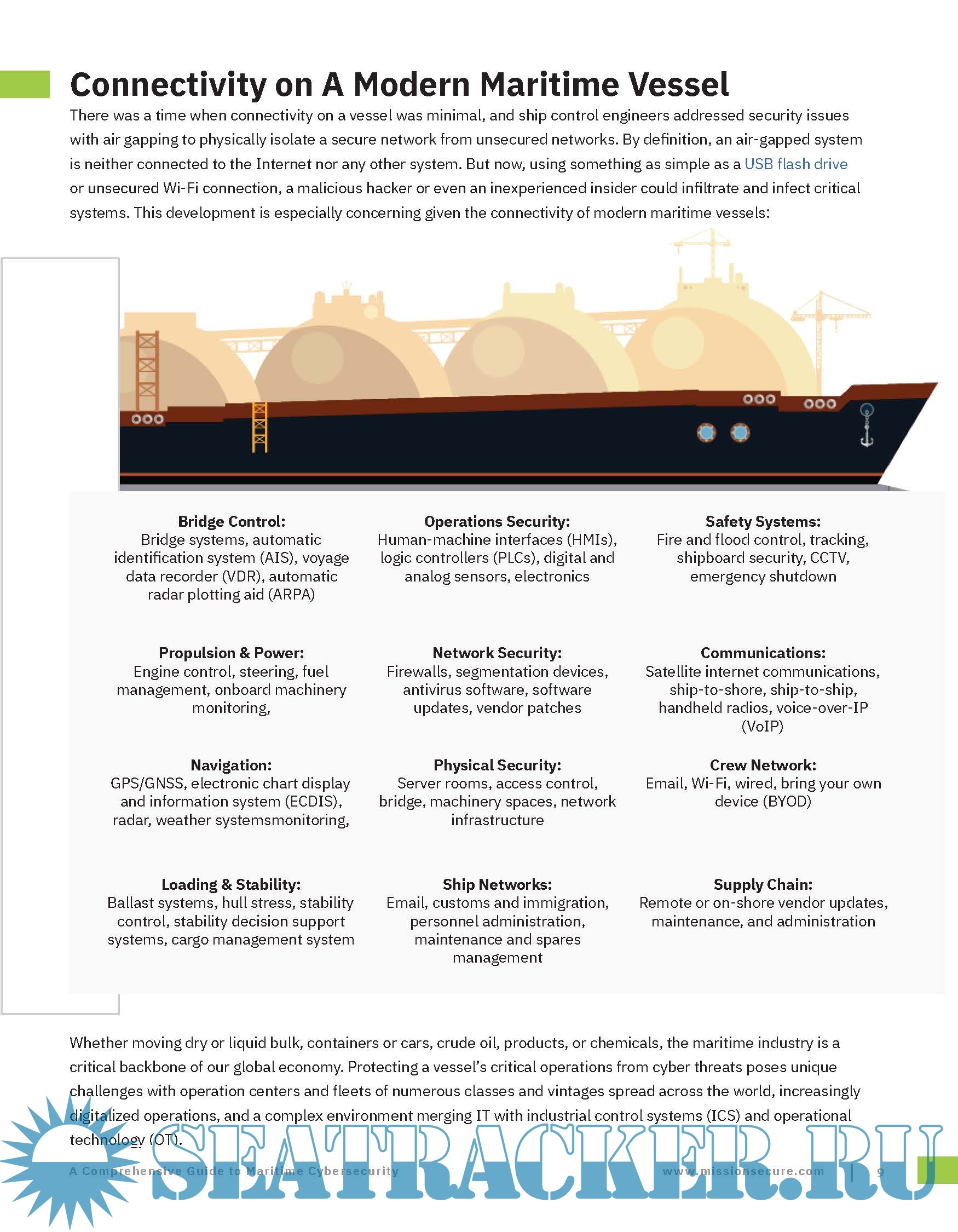 Year: 2021 Language: english Author: Mission Secure Genre: Guide Format: PDF Quality: eBook Pages count: 65 Description: Maritime is one of the oldest industries and lifeblood of the global economy, accounting for the carriage of 90% of world trade. Ships and other vessels may seem like unusual targets for cyberattacks. But with their growing use of industrial control systems (ICS) and satellite communications, hackers have a new playground that’s ripe for attack. As hackers become even more sophisticated in their tactics, it’s inevitable that cyberattacks against OT on ships are becoming the norm rather than the exception. It’s time for the maritime industry to take a look at every aspect of their ship operations to ensure they’re protected and resilient against these growing threats. In this guide, we will help you navigate the ins and outs of maritime cybersecurity, address cybersecurity challenges and compliance considerations, and get you geared up to establish your maritime cybersecurity action plan.