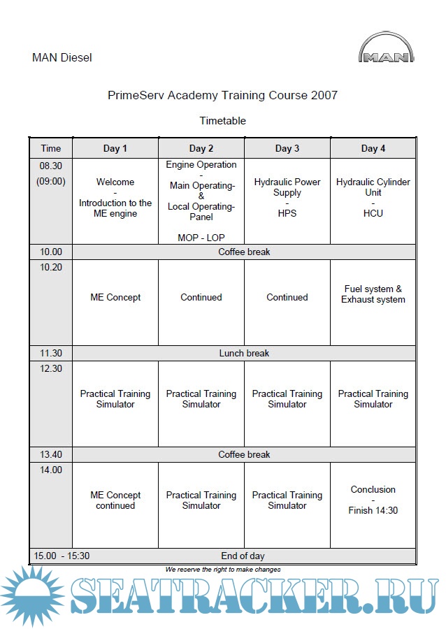 MAN Diesel ME Training Course