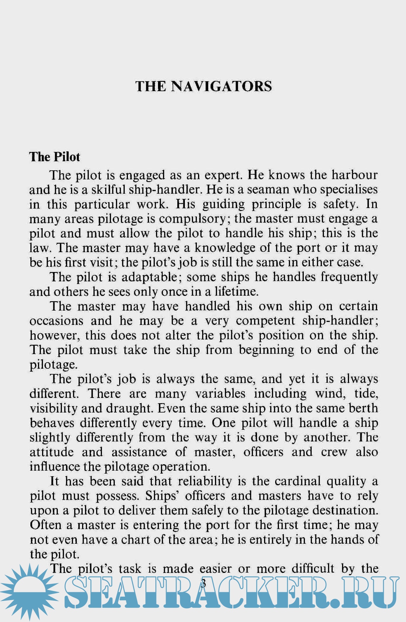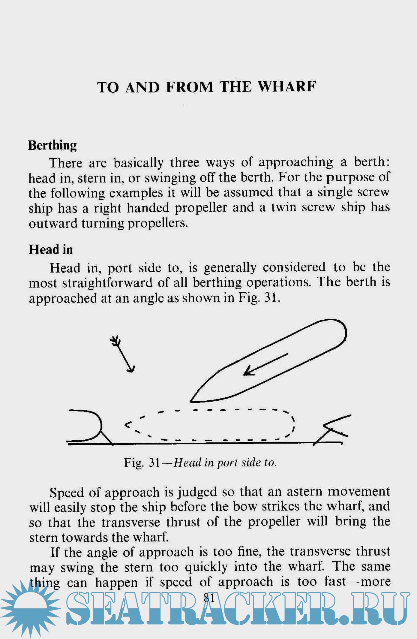 Description: Explains many fundamental principles of ship handling as applied to berthing, unberthing, passing and anchoring. The advantages and disadvantages of motor ships, steamers, bow thrusters and controllable pitch propellers are explained. Particular attention has been given to the effective placement and use of tugs in various situations and there is a summary of developments in tug propulsion from single screw to tractor.