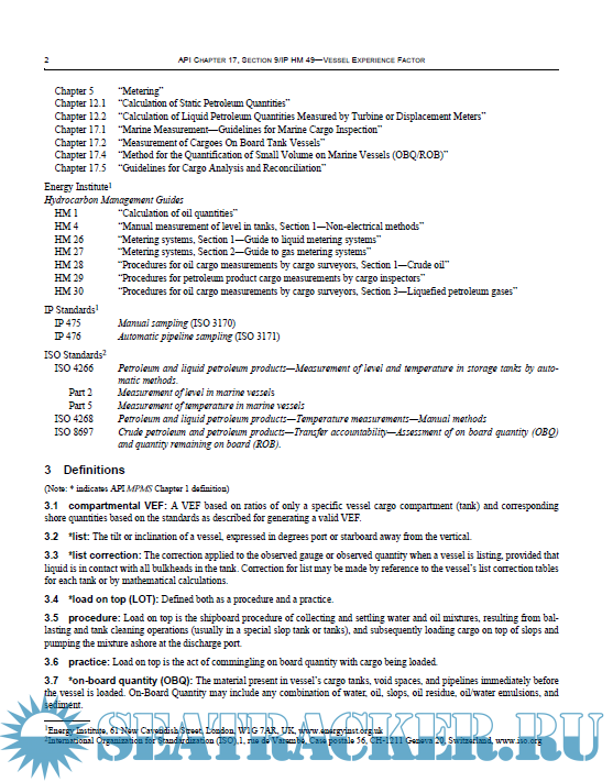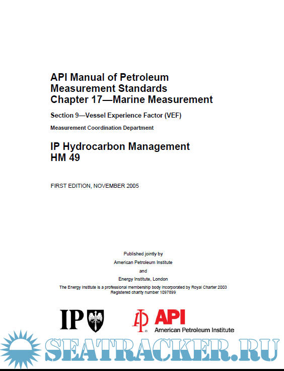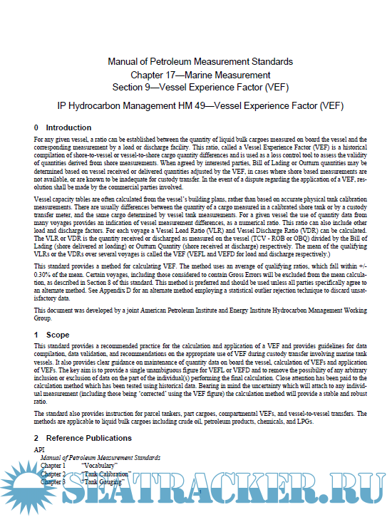 Description: API - Manual of Petroleum Measurement Standards - Chapter 17 - Marine Measurement - Section 9 - Vessel Experience Factor (VEF) -