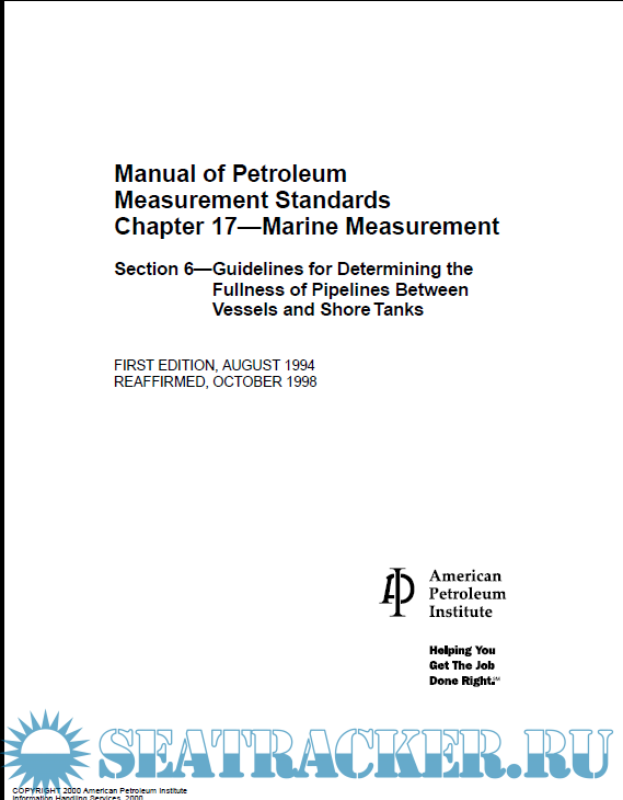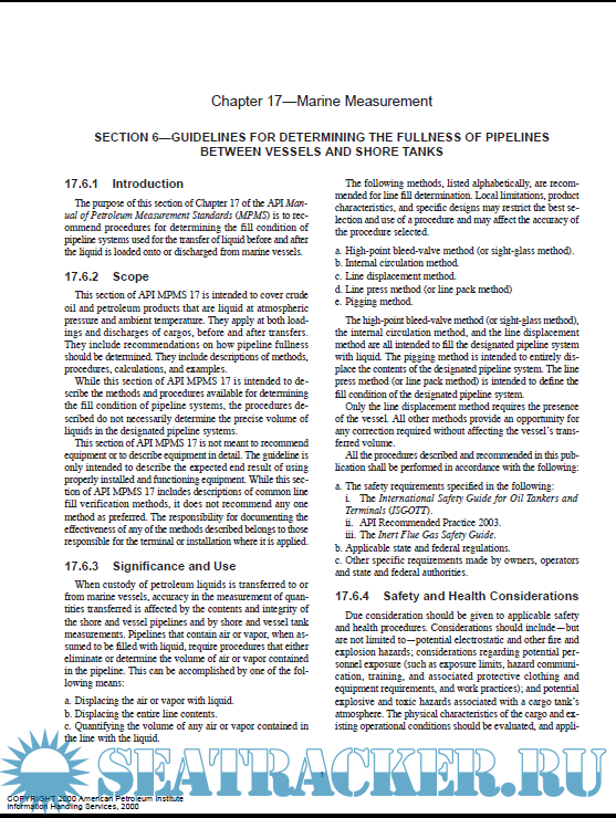 API - Manual of Petroleum Measurement Standards Chapter 17—Marine Measurement Section 6—Guidelines for Determining the Fullness of Pipelines Between Vessels and Shore Tanks.pdf