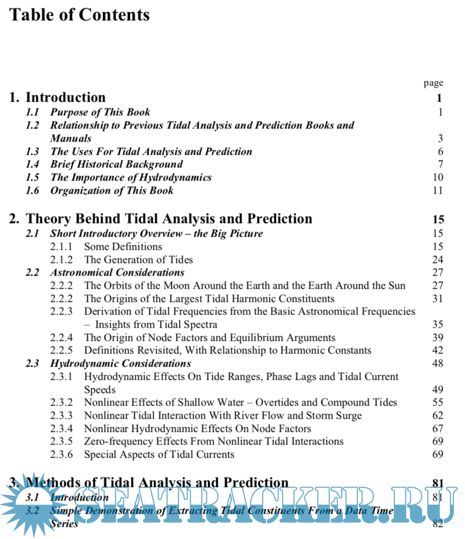 Description: The purpose of this book is to provide the reader with the knowledge required to carry out the most accurate tidal analysis and tidal prediction possible using any set of water level or current data that he or she may have available. The book is also intended to provide the reader with tools to interpret the analysis results with respect to the hydrodynamics (the physics of the water movement) of the bay or ocean from which the data were obtained, so that these results can best be used for particular oceanographic applications. Tidal analysis and prediction involves more than simply running a harmonic analysis program to obtain tidal harmonic constants and then putting them in a tidal prediction program. It requires understanding both the astronomical and the hydrodynamic aspects of the tide. Lack of such an understanding can lead to problems when performing a tidal analysis. A few examples of such problems are very briefly mentioned below (they are explained in more detail later in this book, and the technical terms used below are defined in Chapter 2).
