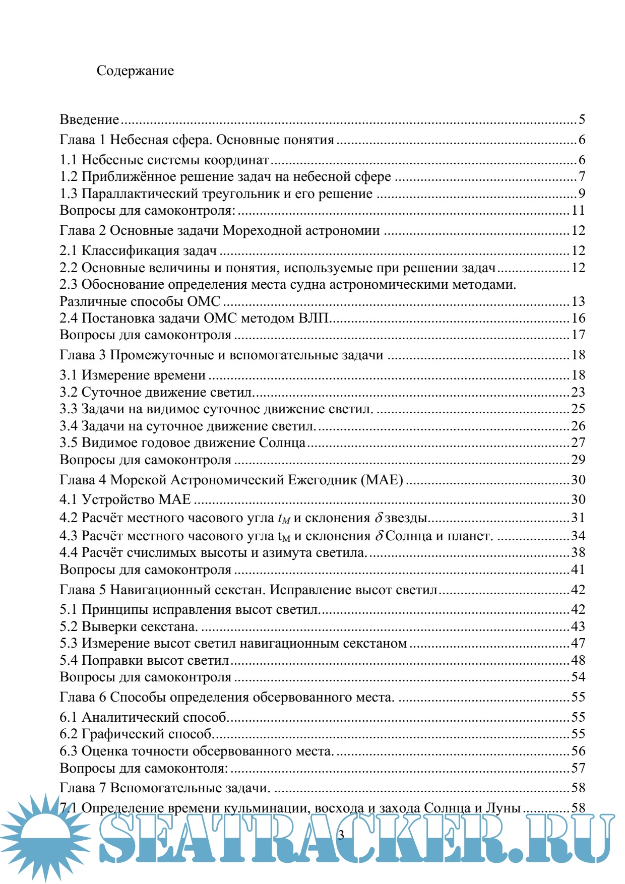 Рассмотрены различные способы решения основных и вспомогательных задач мореходной астрономии, такие как определение места судна, определение поправки компаса, определение времени астрономических наблюдений и пр.