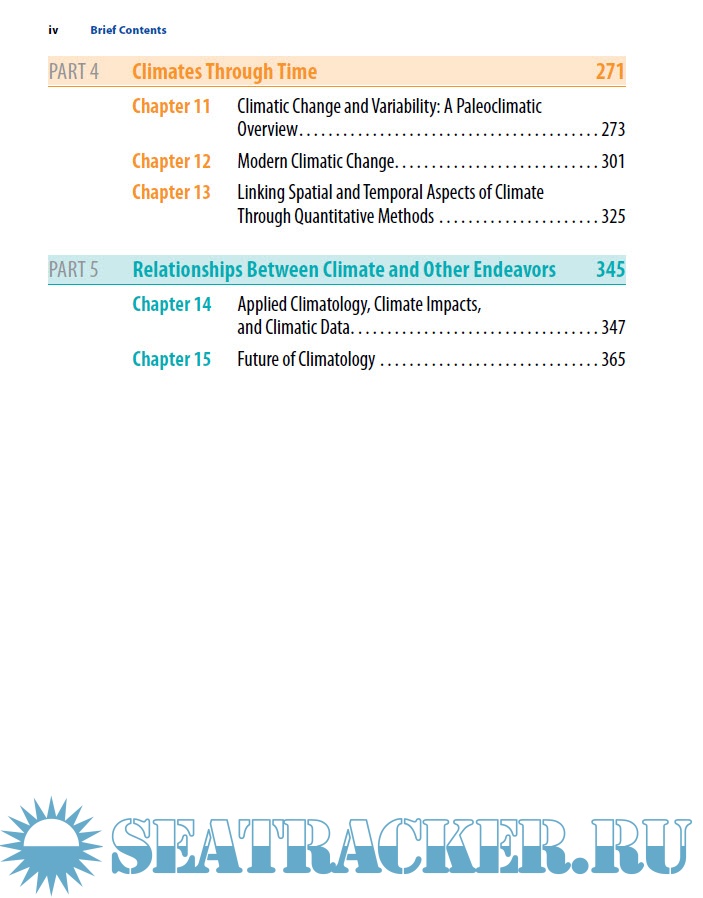Year: 2018 Language: english Author: Robert V. Rohli & Anthony J. Vega Genre: Textbook Publisher: Jones & Bartlett Learning Edition: 4th ISBN: 9781284126563 Format: PDF Quality: eBook Pages count: 433 Description: Welcome to the exciting journey of learning about one of the most widely discussed sciences. Praised for its detail and accuracy, Climatology continues to lead as the most comprehensive presentation of our dynamic climate system. The Fourth Edition features a completely revised, full-color art program that enhances clarity and gradation of all maps, climographs, and images to help readers better understand the diversity of climate within varying climate types. The text appeals to all students, as it covers the basics of atmospheric science in the early chapters and provides the breadth and depth of topics to challenge the more experienced reader. Climatology, Fourth Edition aims to improve students’ communication skills, encourage critical-thinking, and invoke a sense of social responsibility, making it the clear choice in this rapidly developing science.