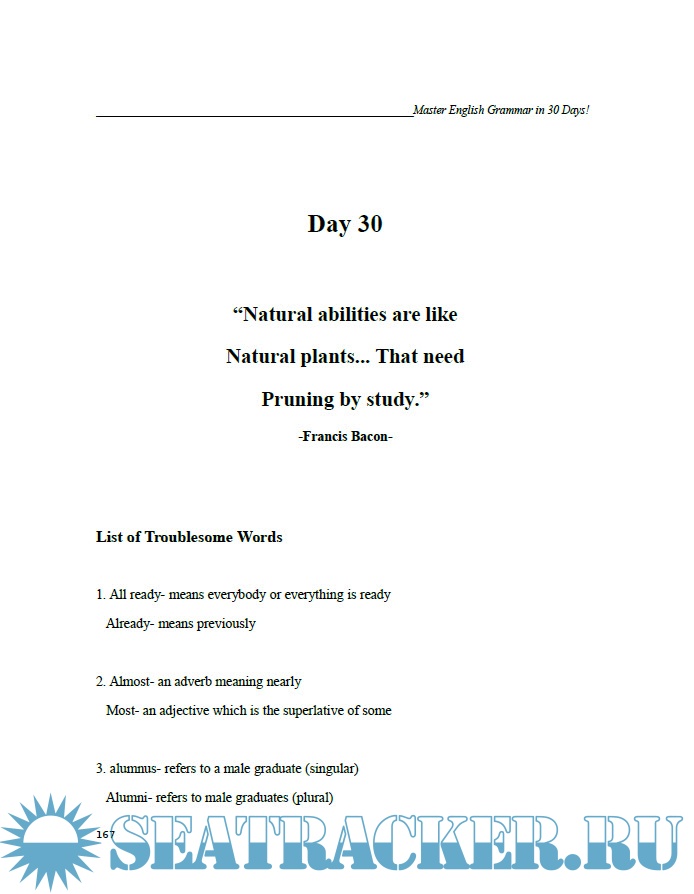 The working formula is to use just 30 minutes of your time every day for only 30 days in order to achieve our goal of mastering the topics. Do not skip the examples and exercises. It is also good to practice daily what you have learned when writing like articles, reports and in your daily conversations.
