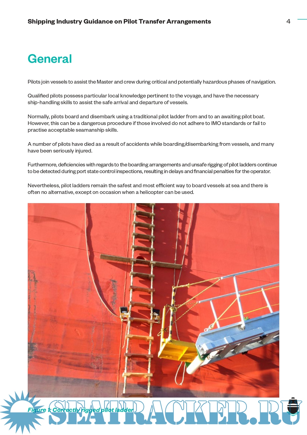 Year: 2022 Language: english Author: INTERNATIONAL CHAMBER OF SHIPPING (ICS) Genre: Руководство Format: PDF Quality: eBook Number of pages: 6 Description: Pilots have the right to decline to board vessels offering defective boarding arrangements, which can result in serious delay. Pilots are also entitled to report defects in boarding arrangements to port state control authorities, which could lead to a full port state control inspection with the risk of delay and financial penalties. A pilot who has climbed a correct ladder, well rigged, and attended by an officer and a deck party will be in the right frame of mind to give their best attention to the safety of the vessel.